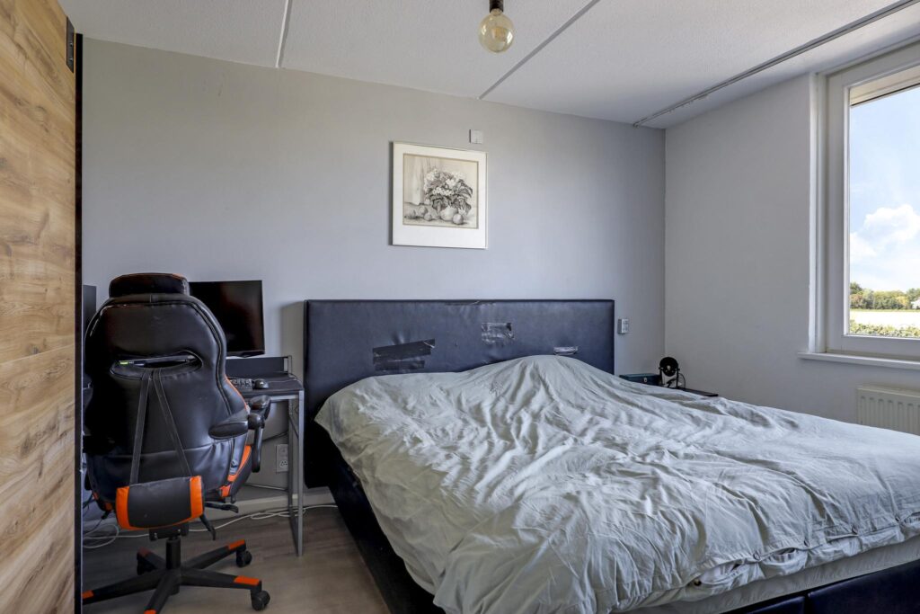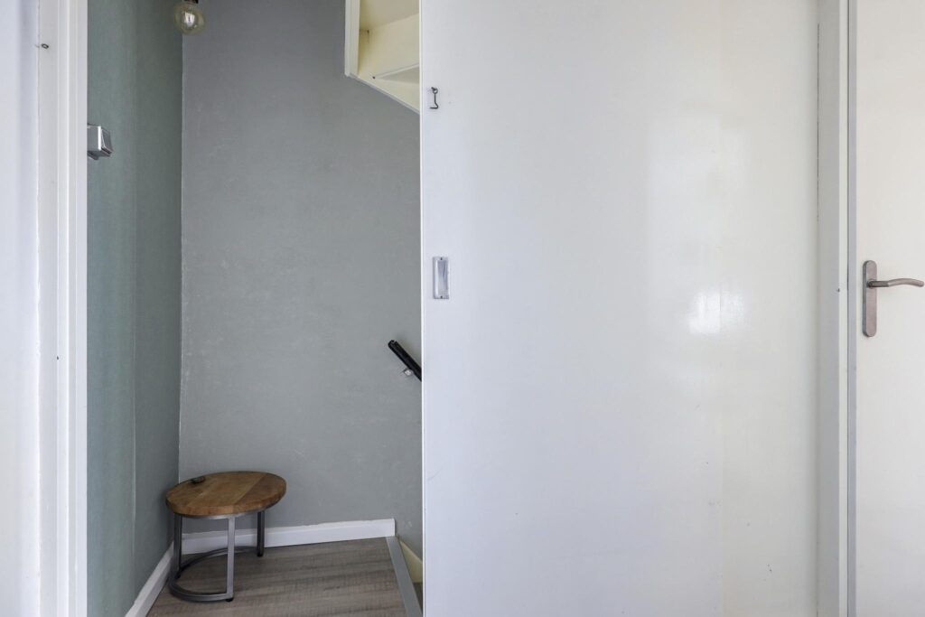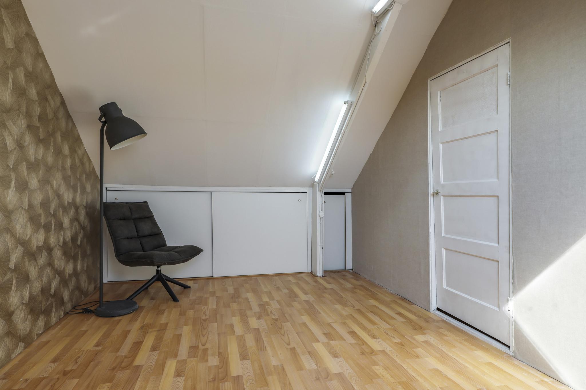 Een 2e vaste trap (die eveneens afsluitbaar is) brengt je naar de 2e verdieping. Deze volwaardige woonlaag met hoge nok is nog verrassend groot. De ruimte is opgedeeld in een voorzolder met washoek en een 4e slaapkamer. Deze kamer is met ca. 14m2 royaal te noemen. En dat is gemeten vanaf 1,5 meter hoogte, wat wil zeggen dat de slaapkamer eigenlijk nog groter is. Een groot dakvenster zorgt voor de nodige lichtinval en ventilatiemogelijkheid. Onder de schuine zijde zijn knieschotten (schuifpanelen) aangebracht waar je nog de nodige spullen achter kunt opbergen.
