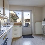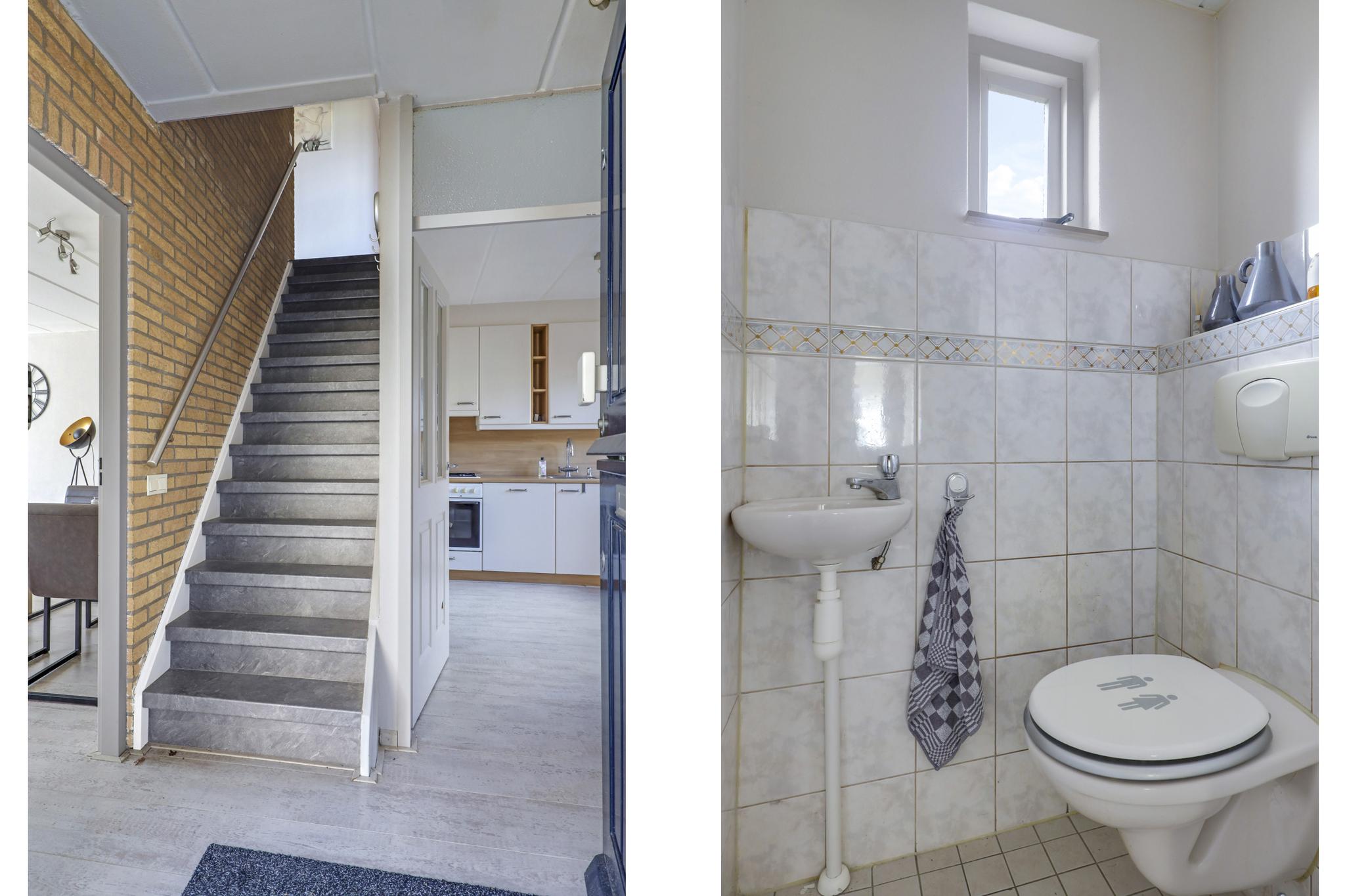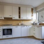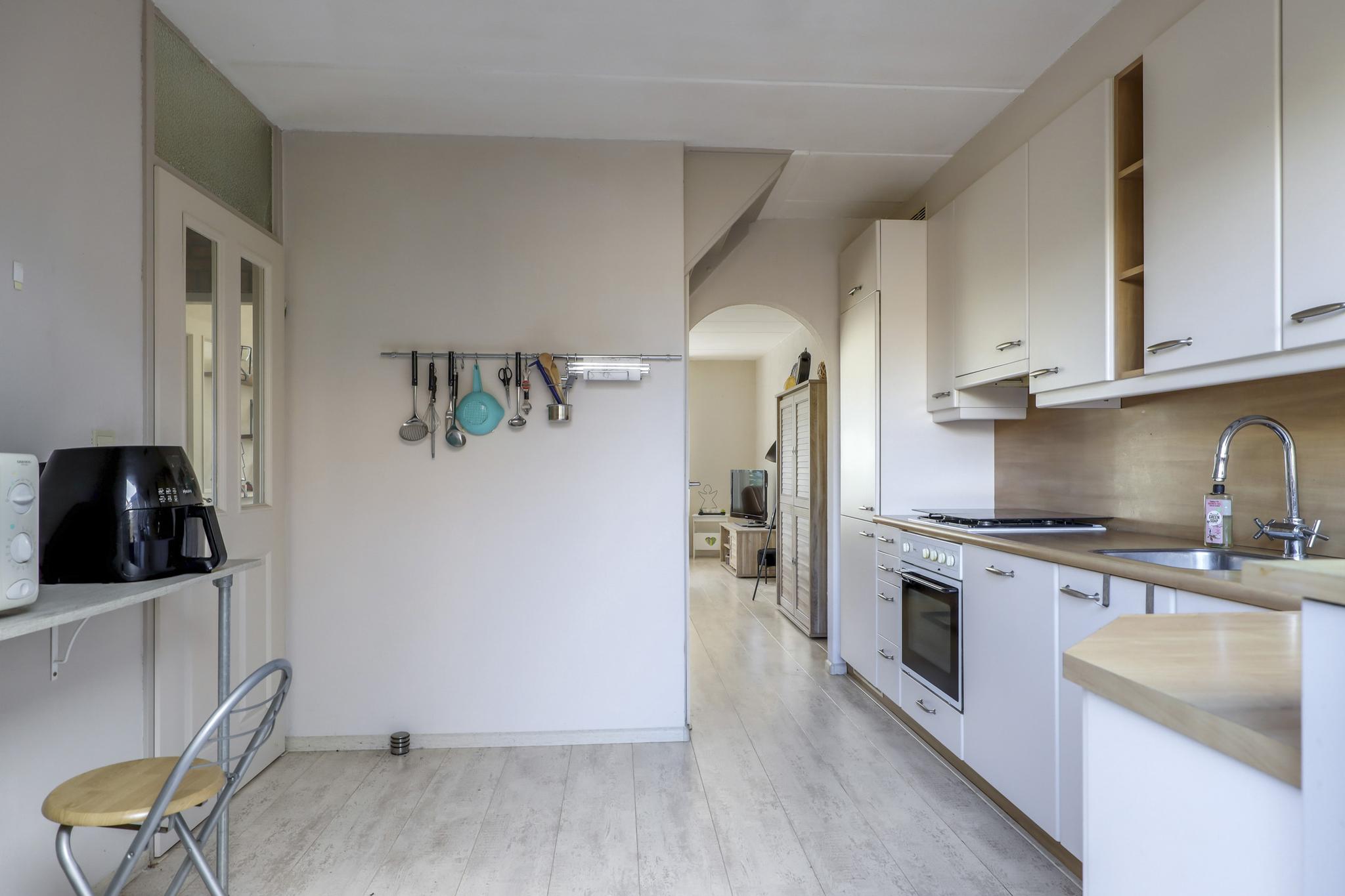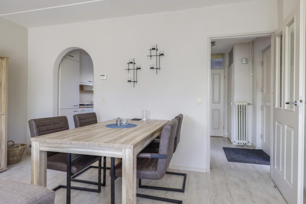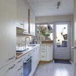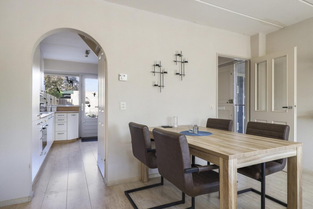 Vanuit de woonkamer is er een doorloop naar de keuken waardoor deze een half-open karakter heeft. De keuken is daardoor tuingericht waarbij ook hier een groot raam voor opvallend veel daglicht zorgt. De keukenopstelling is voorzien van diverse inbouwapparatuur zoals een vaatwasser, een koelkast, een 4-pits gaskookplaat met afzuiger en een oven. Er is voldoende kastruimte, onder meer in de trap/voorraadkast. De keuken is groot genoeg voor een 4-persoons eettafel. Mocht je een grotere keuken wensen, dan zijn er prima uitbouwmogelijkheden. Nu geeft een tuindeur direct toegang tot het buitenterras.