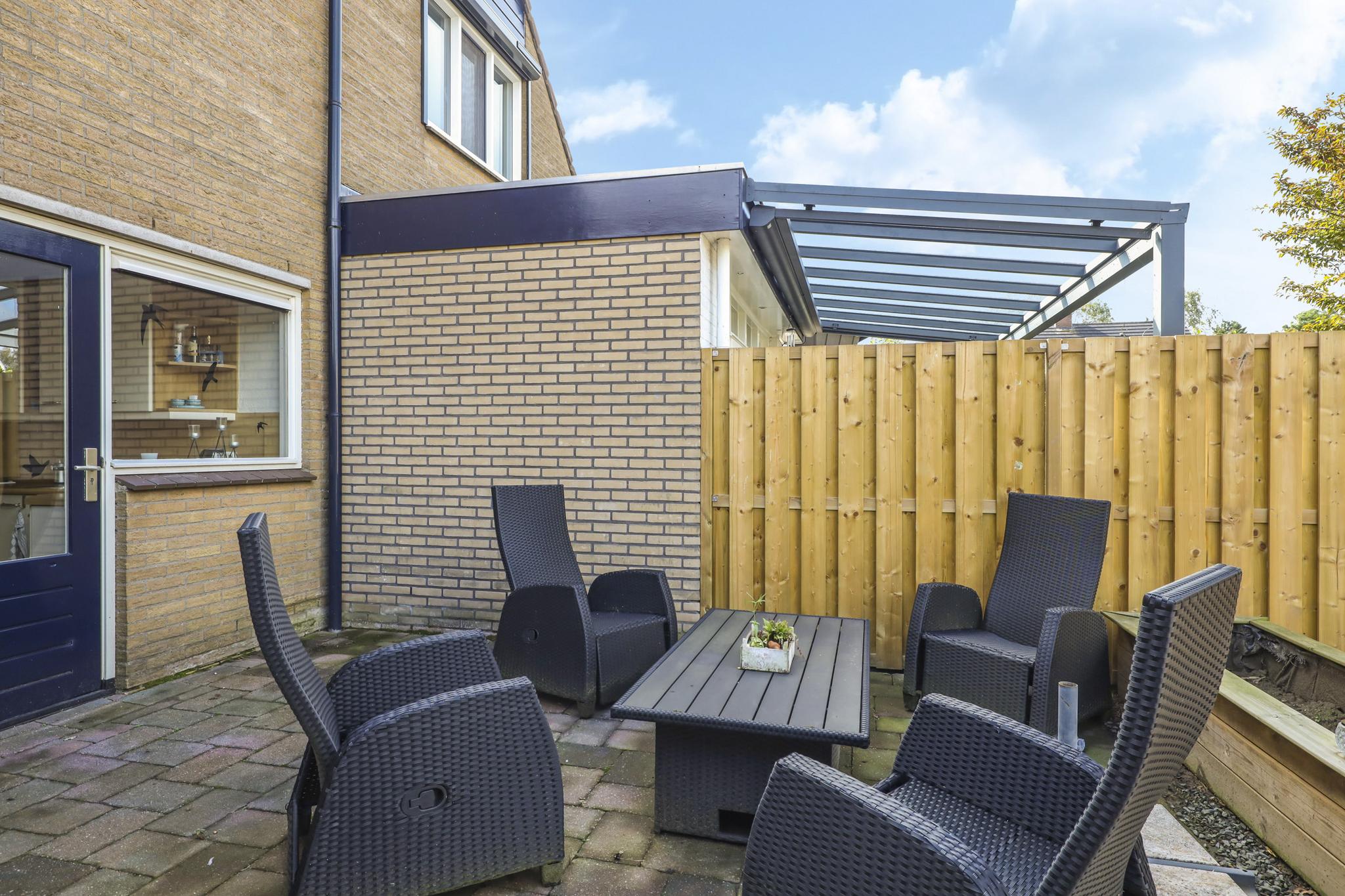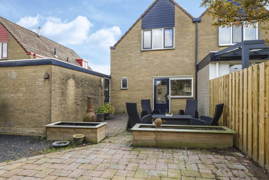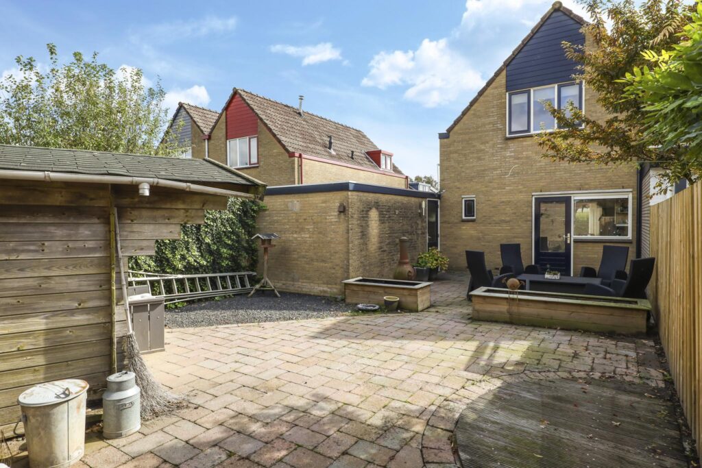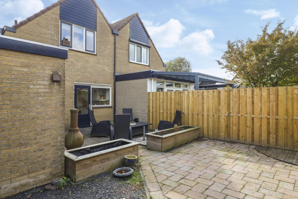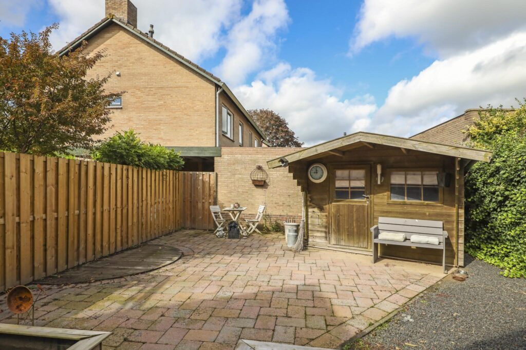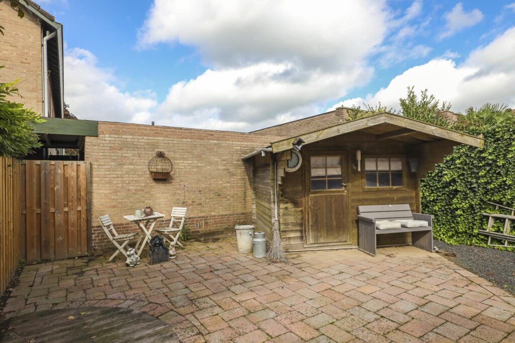 De achtertuin is mooi in balans wat formaat betreft. De tuin is 8 meter breed en bijna 13 meter diep waardoor je meerdere terrassen kunt maken. Met name achterin de tuin heb je veel zonuren. Hier staat overigens ook een houten tuinhuis (6m2), welke is voorzien van elektra. Aan één zijde van de tuin is recent een nieuwe schutting geplaatst.