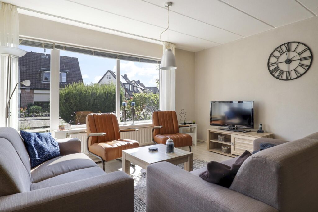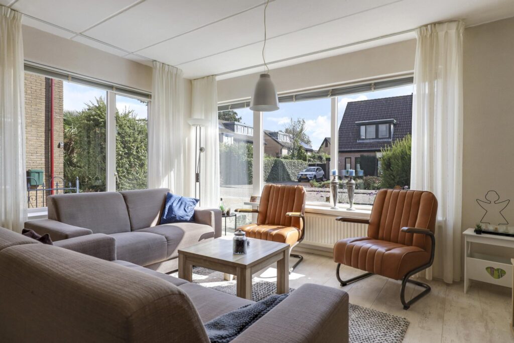 De woonkamer is aan de voorzijde gelegen. Veel glas op het zuiden, waaronder een raam tot aan de vloer, zorgen voor veel lichtinval. Dit versterkt het ruimtelijke gevoel van de toch al niet kleine woonkamer. Deze is namelijk meer dan 25m2 groot waardoor je veel inrichtingsmogelijkheden hebt. Overigens kun je kiezen of dat je een eettafel in de woonkamer of in de keuken plaatst.