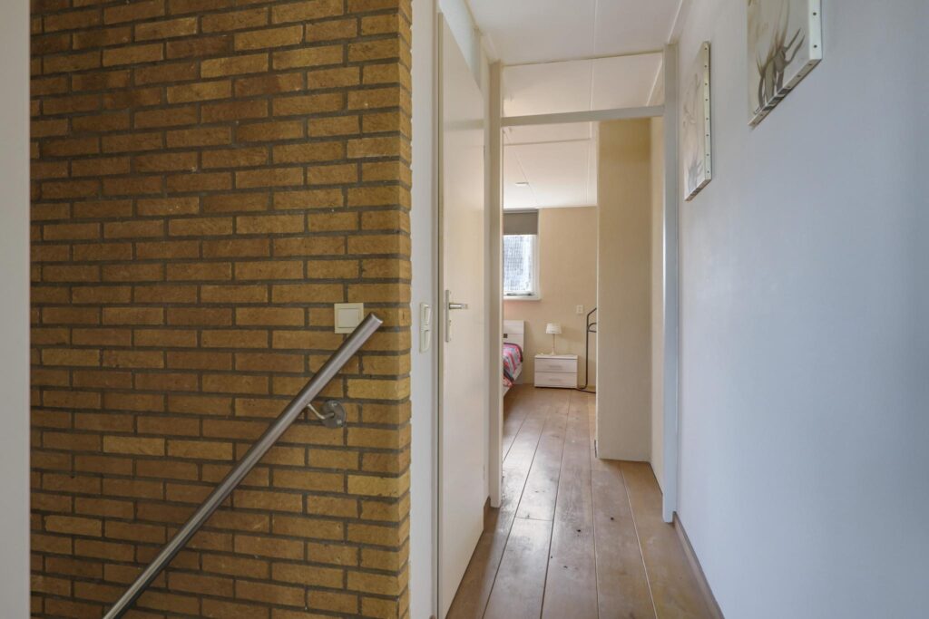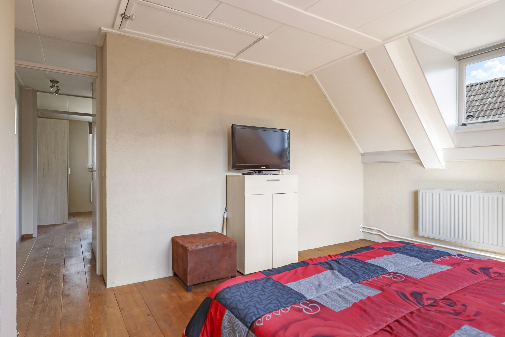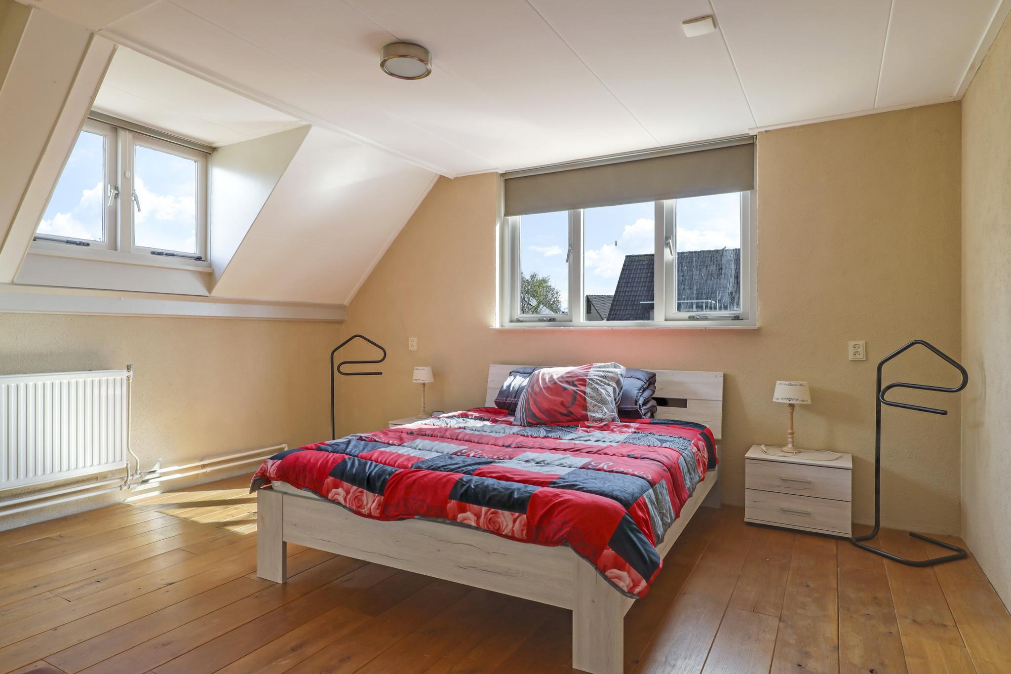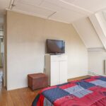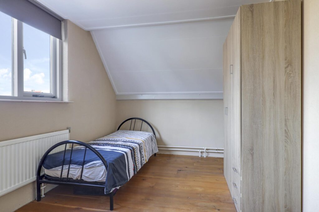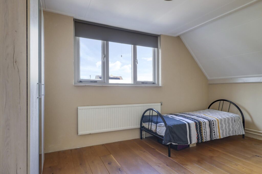 De indeling van de 1e verdieping is hier niet meer origineel. Van oorsprong had de woning 3 slaapkamers, maar 2 slaapkamers zijn bij elkaar getrokken. Dit heeft geresulteerd in een royale masterbedroom van maar liefst 18m2 groot. Je hoeft hier niet te twijfelen of dat een groot 2-persoonsbed en een linnenkast wel past. Een kleine dakkapel zorgt voor een leuk detail. Aan de achterzijde is de 2e slaapkamer te vinden. Deze kamer is eveneens over de volle breedte van de woning gelegen en is 12m2 groot. Je zou zelfs kunnen kiezen waar je een 2-persoons bed neer zet.