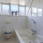 Badkamer met douche, ligbad, wastafel, 2e toilet en dakkapel