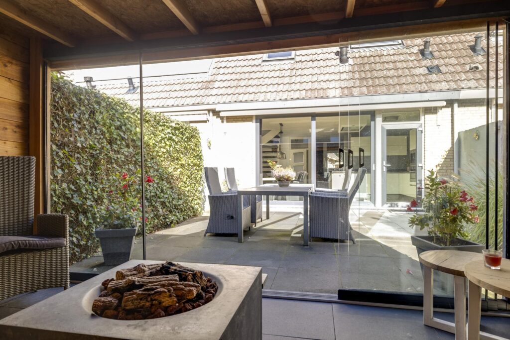 Glazen schuifpanelen maken van de veranda een afsluitbare tuinkamer