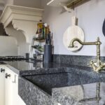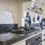 Luxe inbouwkeuken met lang (natuurstenen) werkblad