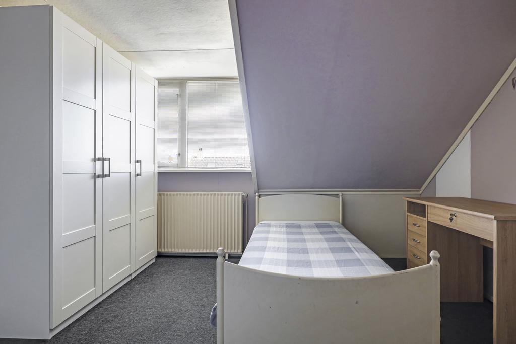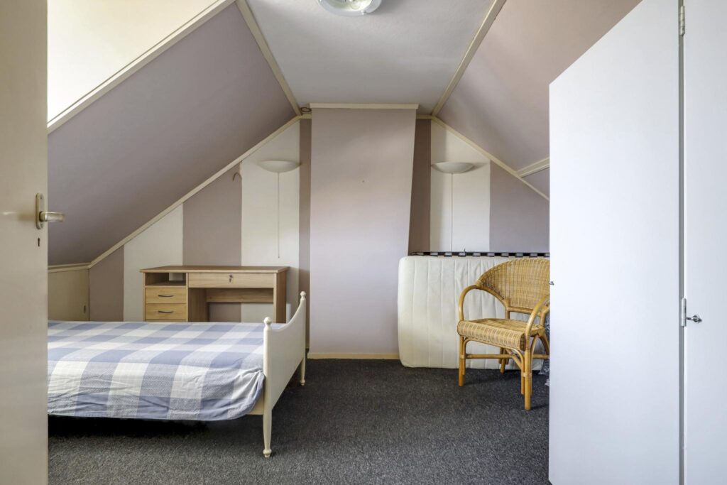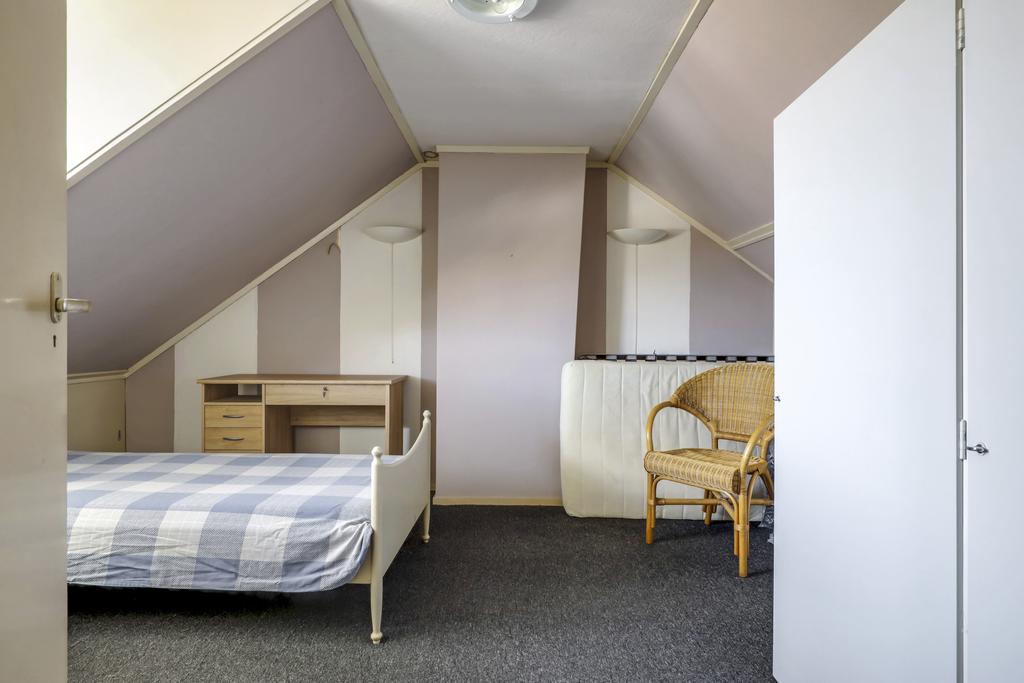 Via een vaste trap is de 2e verdieping te bereiken. Deze woonlaag betreft een volwaardige woonlaag met een goede nokhoogte waarbij er een 4e slaapkamer is gecreëerd. Deze kamer is royaal te noemen en ca. 15m2 groot (gemeten vanaf 1,5m hoogte). De dakkapel zorgt voor de nodige lichtinval maar verkeert wel in een matige staat van onderhoud. Onder de schuine dakvlakken is nog handige opbergruimte gecreëerd. De voorzolder is opgedeeld met een inloopkast alwaar we de CV-ketel terugvinden. Ook is er een klein dakvenster aanwezig.