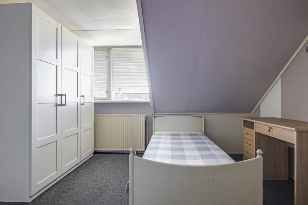 4e Slaapkamer met dakkapel met knieschot opbergruimte.