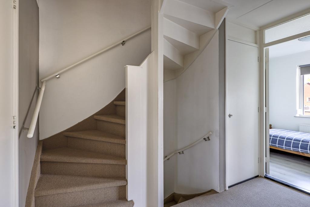 Overloop met inbouwkast en vaste trap naar 2e verdieping