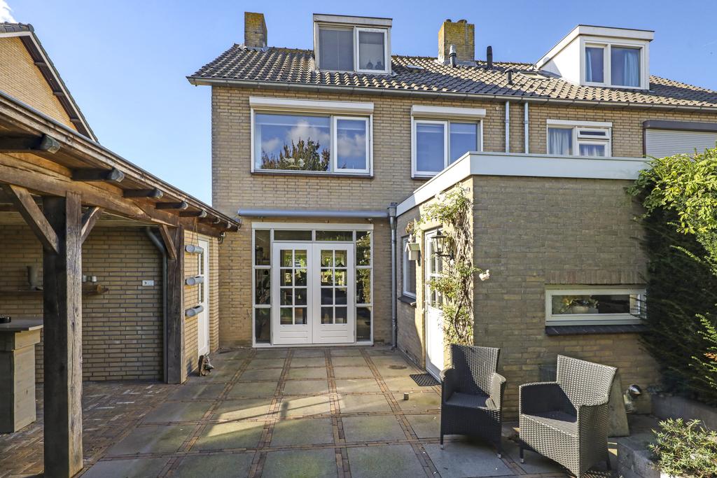 Breed opgezette en uitgebouwde 2-ONDER-1-KAPWONING, bestaande uit 3 volwaardige woonlagen, een DAKKAPEL op de 2e verdieping en een nieuw aangebouwde, geïsoleerde GARAGE (6,6m lang) met openslaande deuren naar de OPRIT. In de privacyvolle achtertuin staat een grote stijlvolle VERANDA (24m2) die met robuuste eikenhouten balken is opgebouwd en is voorzien van een gezellige houtkachel.