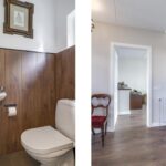 Door de serre-aanbouw van de woonkamer is er ook een doorloop naar de bijkeuken en inpandige garage gecreëerd. Van oorsprong was het één grote garage, maar deze is dus opgedeeld in een praktische bijkeuken en een kleinere garage die van binnenuit toegankelijk is. Mocht je (op termijn) de woning levensloopbestendig willen bewonen door alle voorzieningen op de begane grond te hebben, dan zou je hier prima een slaapkamer en (2e) badkamer kunnen maken. Er zijn reeds voorzieningen aanwezig zoals warm/koud water en een afvoer. De CV-ketel is hier geïnstalleerd en de wasmachine-aansluiting zit in de garage.