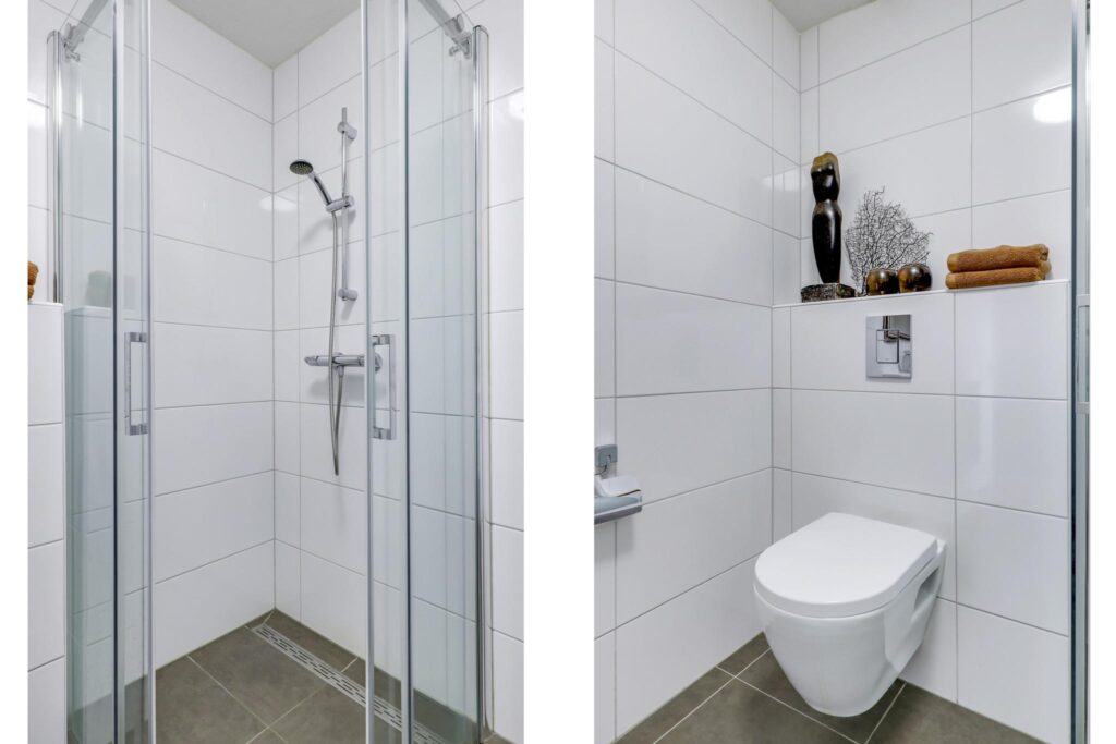 In 2021 heeft deze woning een compleet nieuwe badkamer gekregen. Daarbij zijn er goede keuzes gemaakt in sanitair en tegelwerk waarbij groot formaat witte tegels en een antracietkleurige vloer voor een frisse en moderne uitstraling zorgen. De ruimte is ingedeeld met een inloopdouche met drainafvoer, een 2e zwevend wandcloset en een wastafelmeubel met ladekorven. Een handdoekradiator maakt de badkamer compleet.