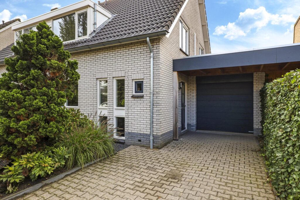 Van binnenuit is de GARAGE toegankelijk, welke is verwarmd en is voorzien van een elektrisch bedienbare sectionaaldeur naar de oprit. Vóór de garage is een overstek/luifel gemaakt waardoor je bij de voordeur altijd droog staat. De 11 meter lange OPRIT biedt parkeergelegenheid voor 2 auto’s op eigen terrein.