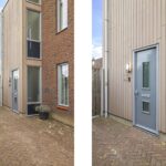 Andere speelse elementen zijn de schuin weglopende voorgevel en het hoge lessenaarsdak op de 2e verdieping. Deze bijzondere kapconstructie heeft 2 verschillende dakvlakken waarbij hoge ramen tot in de nok voor een verspringing én veel daglicht zorgen. Extra dakvensters maken het ruimtelijke gevoel nog meer bijzonder. Kortom, zoek je geen standaard woonhuis, kom dan eens hier kijken en laat je verrassen.