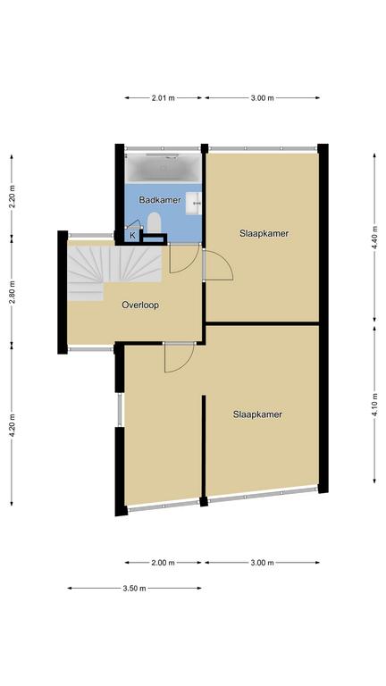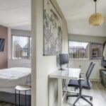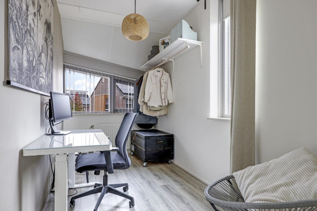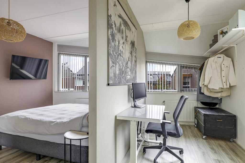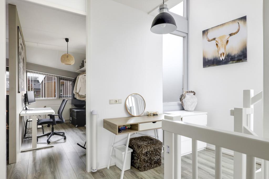 Een ruime overloop met veel daglicht geeft toegang tot de slaapkamers en de badkamer. Van oorsprong telt deze woonlaag 3 slaapkamers, maar in de huidige setting is de indeling iets veranderd doordat een wand is verzet en er een opening tussen 2 slaapkamers is gecreëerd. Dit heeft geresulteerd in 2 gelijkwaardige slaapkamers van ieder ca. 13m2 groot en een ‘bijkamer’ van ca. 8m2 groot die je voor meerdere doeleinden zou kunnen gebruiken. Denk daarbij aan een walk-in-closet of een separate werkkamer voor wanneer je veel vanuit huis werkt.