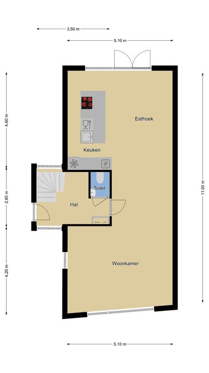L-woonkamer (11 meter lang) met zithoek en brede overgang naar…