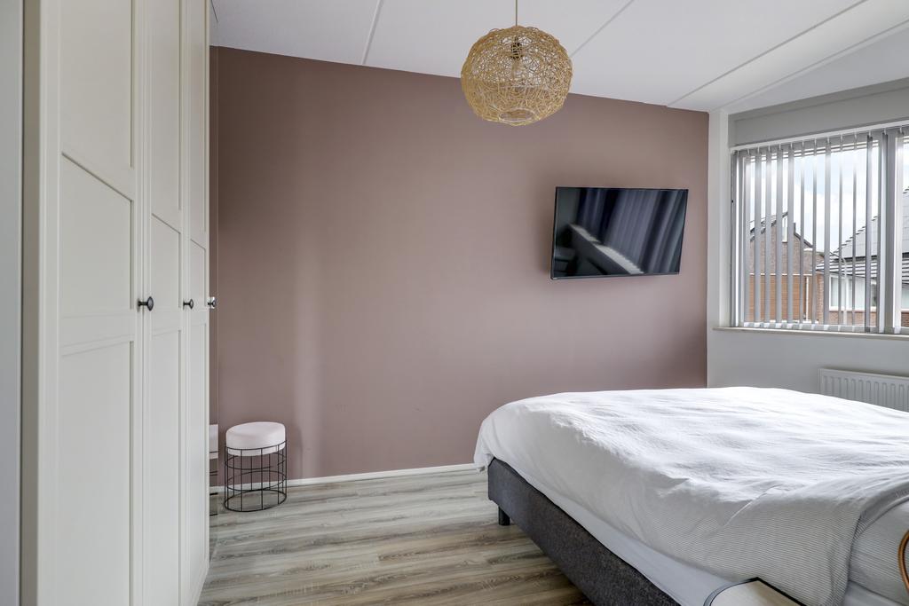Mocht je voorkeur uitgaan naar 3 afzonderlijke slaapkamers op de 1e verdieping, dan is dit alsnog eenvoudig te realiseren. Het voordeel van dat de wand tussen de 2 grootste slaapkamers is verplaatst, is dat je op beide kamers een grote linnenkast achter de deur kwijt kunt zonder dat de kasten in de weg staan. Voor ouders en tieners kan dit erg praktisch zijn. Noemenswaardig is het elektrisch bedienbare rolluik op de slaapkamer aan de achterzijde. Hierdoor is deze kamer 100% te verduisteren.