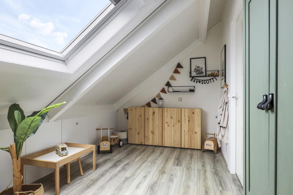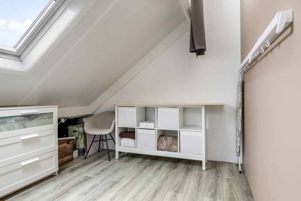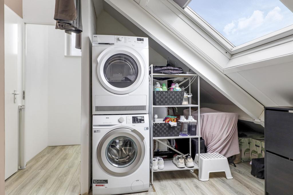 De voorzolder biedt ruimte aan de wasmachine, wasdroger en de (nieuwe) CV-ketelopstelling. Hier kun je comfortabel je was laten drogen en/of benutten als werk/studiehoek. En ook hier is een extra dakvenster geplaatst waardoor je lekker kunt laten doorwaaien.