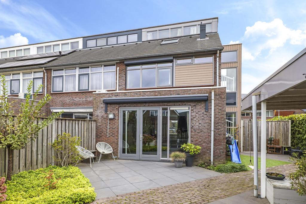 Stijlvolle HOEKWONING (2007) bestaande uit 3 volwaardige woonlagen en een AANBOUW over de volle breedte van de woning. Deze onder architectuur gebouwde woning heeft een speels karakter en een verrassende indeling met onder andere een royale leefkeuken met eilandopstelling, dubbele terrasdeuren, grote raampartijen met veel lichtinval, op de 1e verdieping 3 (slaap)kamers en een moderne badkamer. Op de 2e verdieping is nog een extra slaapkamer gecreëerd, zijn er extra dakvensters geplaatst en vind je een praktische wasruimte. Verder heeft de woning diverse extra’s zoals luxe inbouwapparatuur in de keuken, vloerverwarming op de badkamer, een elektrisch bedienbaar rolluik en zonwering aan de achtergevel. De woning is volledig geïsoleerd, heeft een nieuwe CV-ketel (2024) en draagt energielabel A.