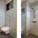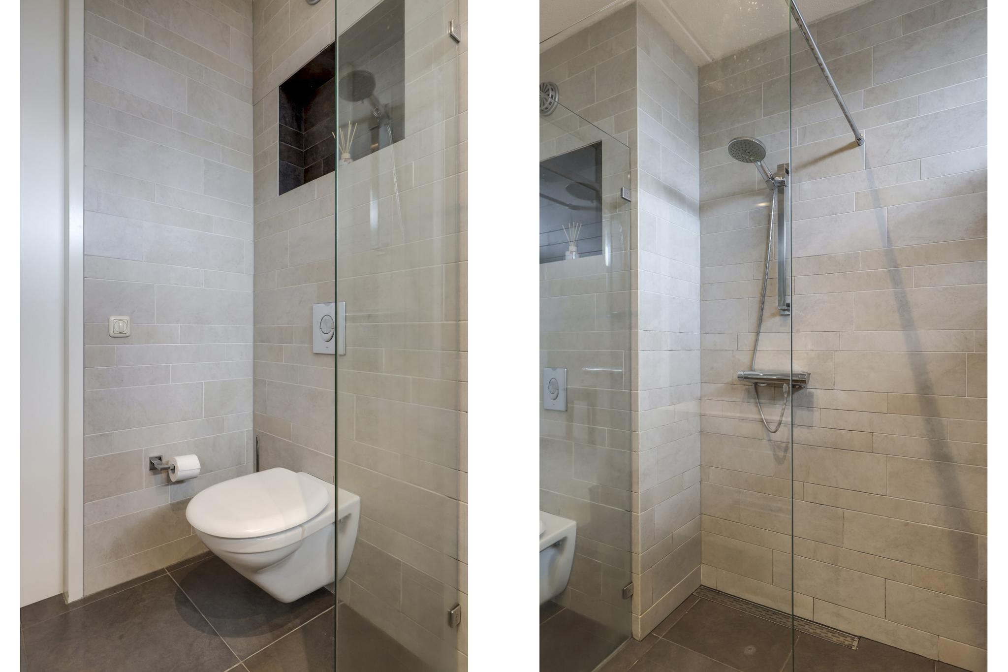 De badkamer is lekker ruim opgezet en daar is dankbaar gebruik van gemaakt. De indeling bestaat uit een ligbad (whirlpool), een separate inloopdouche, een breed 2-persoons wastafelmeubel en een 2e (zwevend) toilet. De badkamer heeft een frisse en moderne uitstraling, mede door het trendy sanitair en het verzorgde tegelwerk. Boven het wastafelmeubel is een even zo brede spiegel met verlichting geplaatst. Het wastafelmeubel zelf biedt voldoende opbergmogelijkheden voor toiletspullen. Een groot pluspunt zijn de bovenlichten (ramen). Hierdoor heb je daglicht en kun je eenvoudig een raam openzetten terwijl je wel 100% privacy geniet. Overigens is de badkamer voorzien van mechanische ventilatie waarvan de MV-box is vernieuwd.