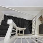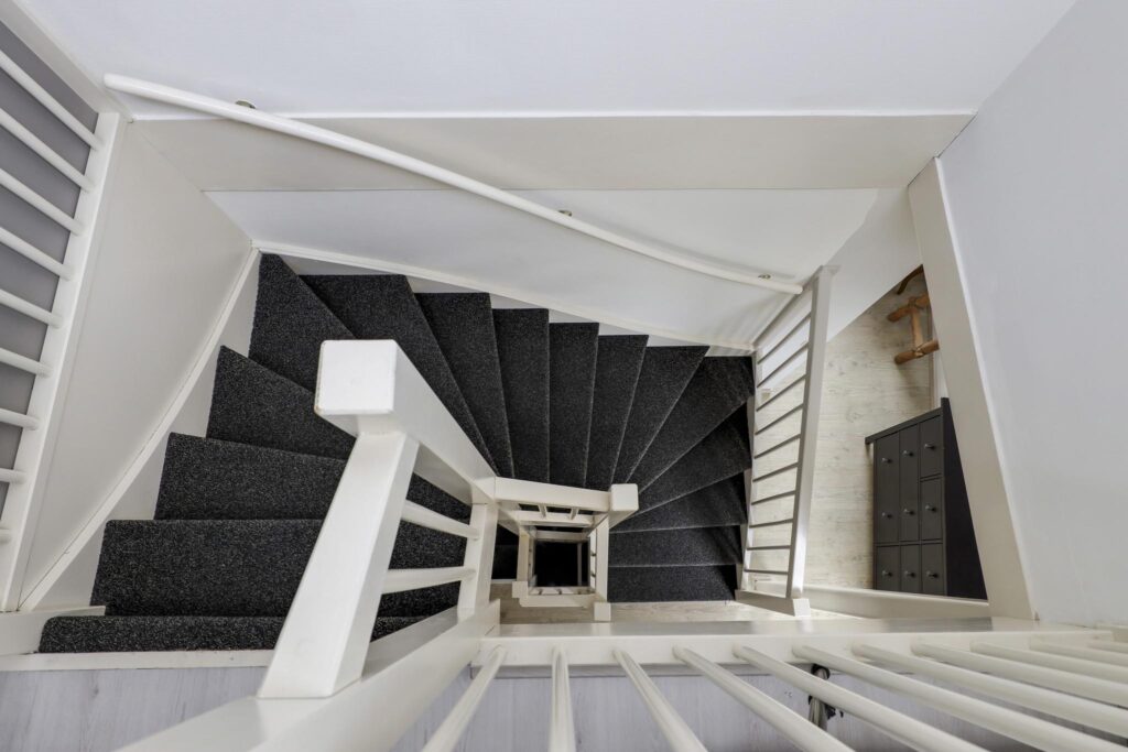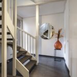 Speels opgezet trappenhuis met hoge glaspuien en veel lichtinval