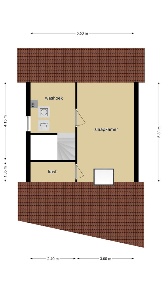 Slaapkamer 4 met groot dakvenster en knieschot opbergruimte