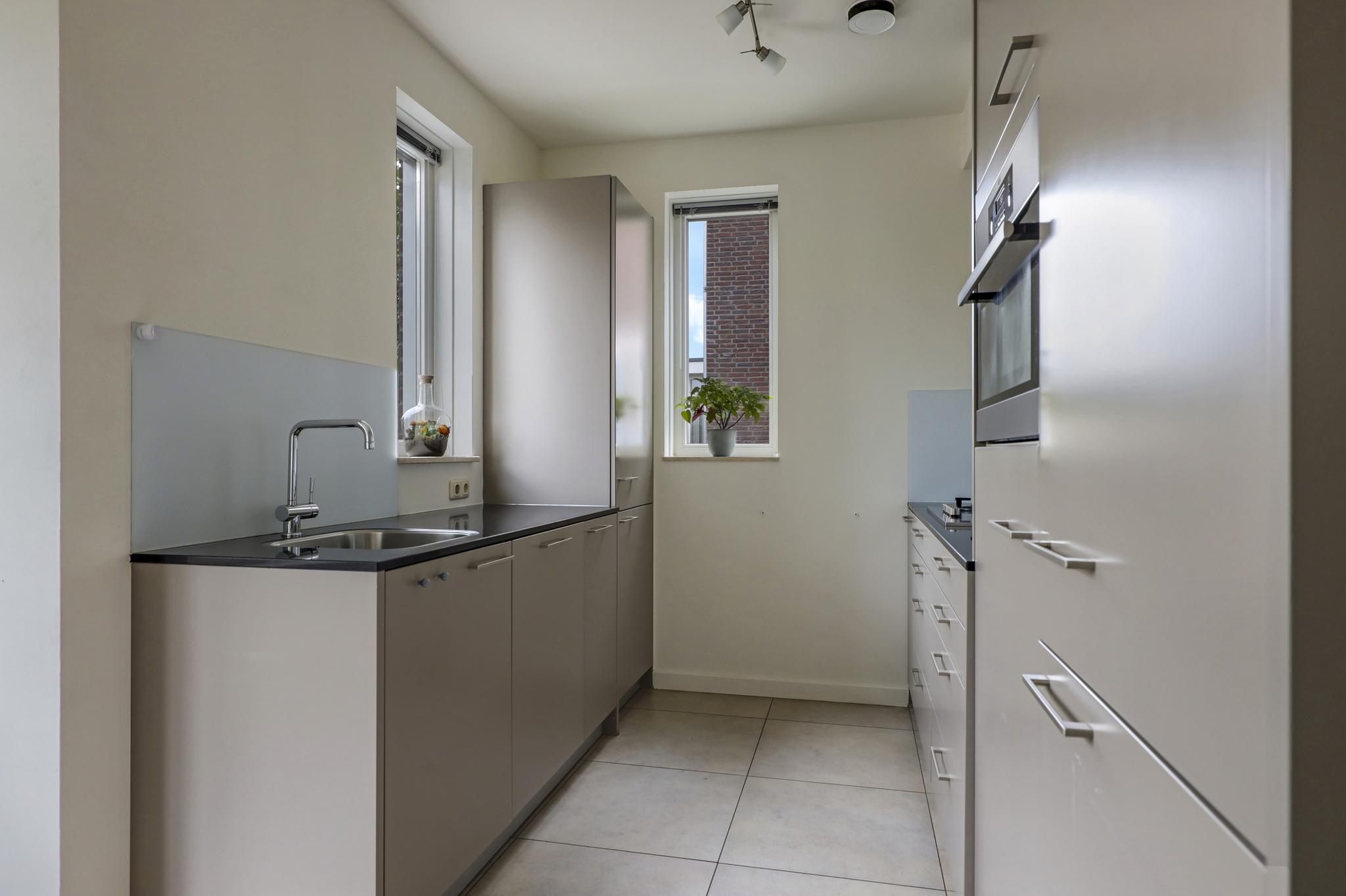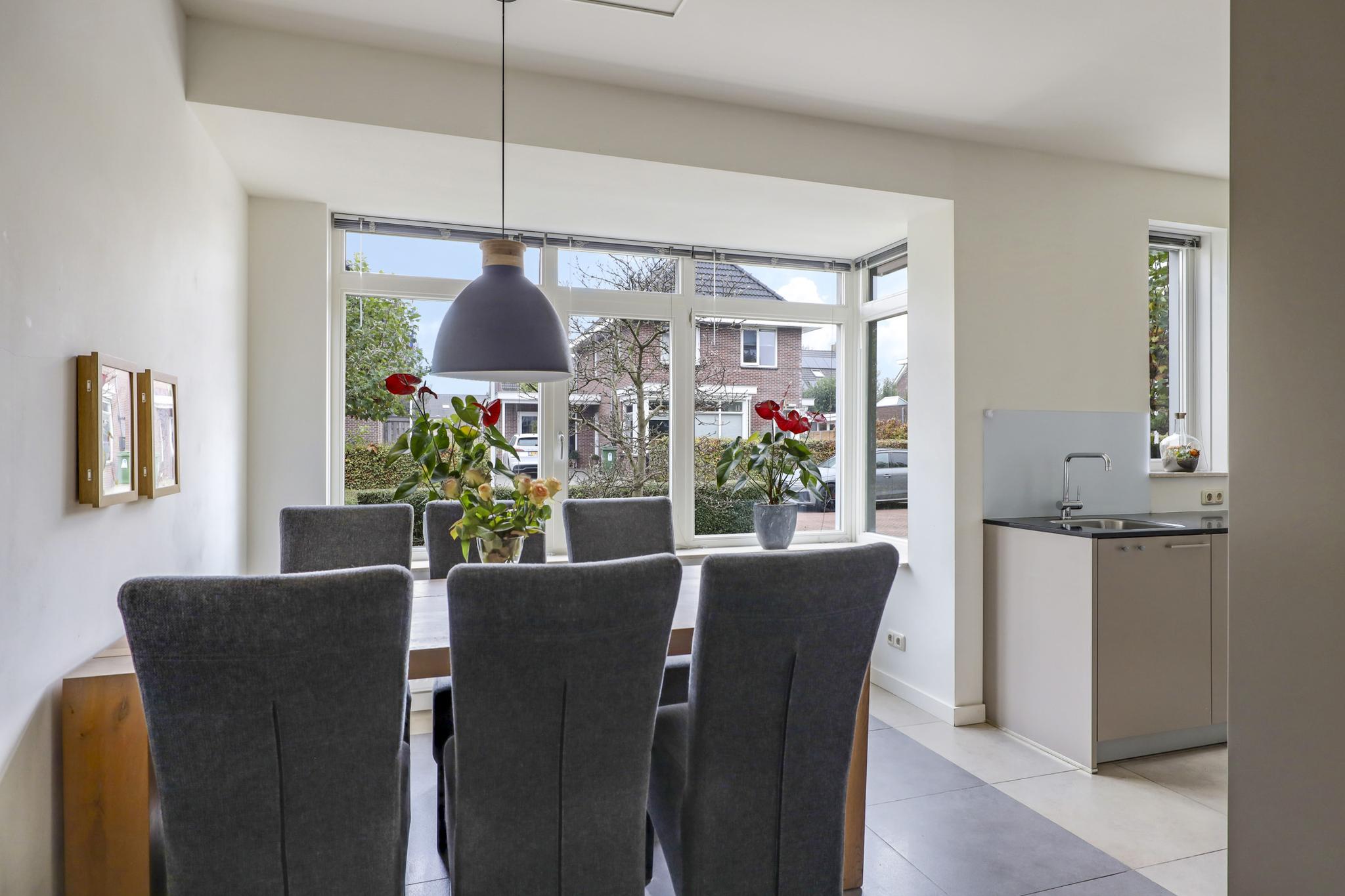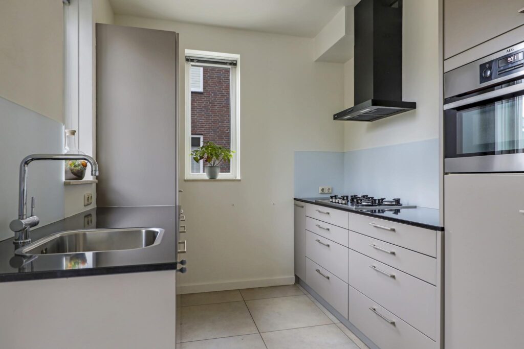 De keuken is aan de voorzijde gelegen waarbij de erker voor extra leefruimte en daglicht zorgt. Hier kun je dan ook prima een gezellige eettafel kwijt.