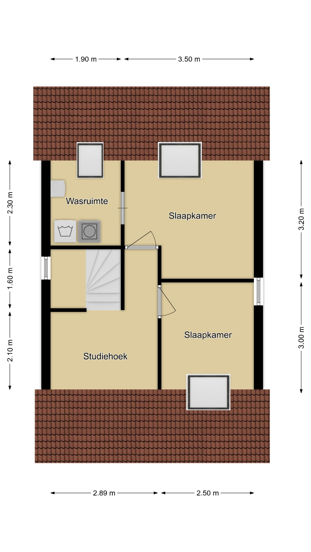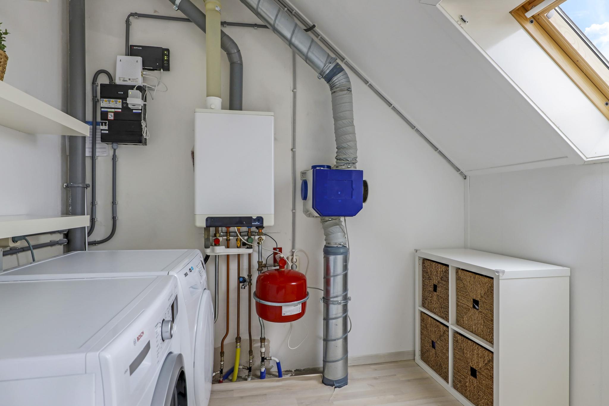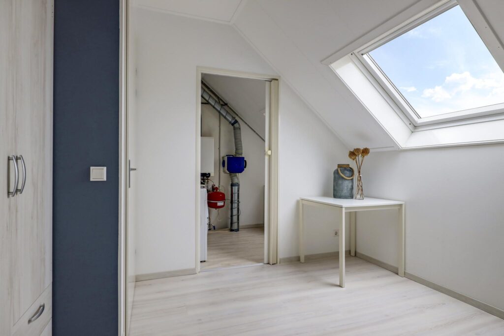 Via één van de kamers is de wasruimte toegankelijk. Hier kun je met gemak de wasmachine en wasdroger naast elkaar plaatsen. Tevens zijn hier de CV-ketel en de MV-box geïnstalleerd. Het extra dakvenster (3e dakvenster) is geen overbodige luxe om te kunnen ventileren.