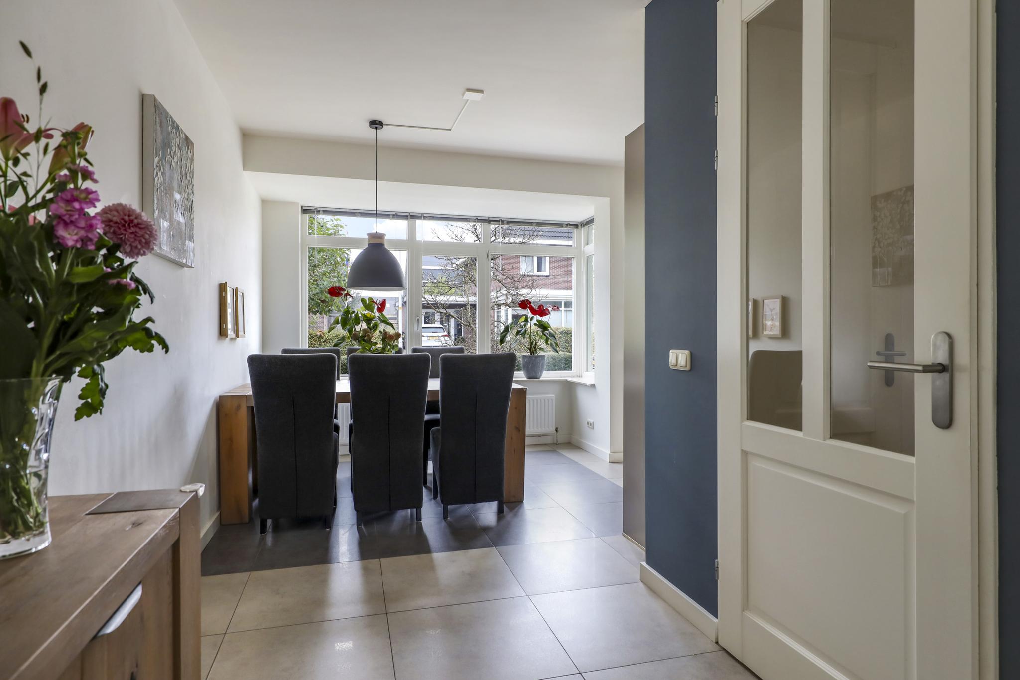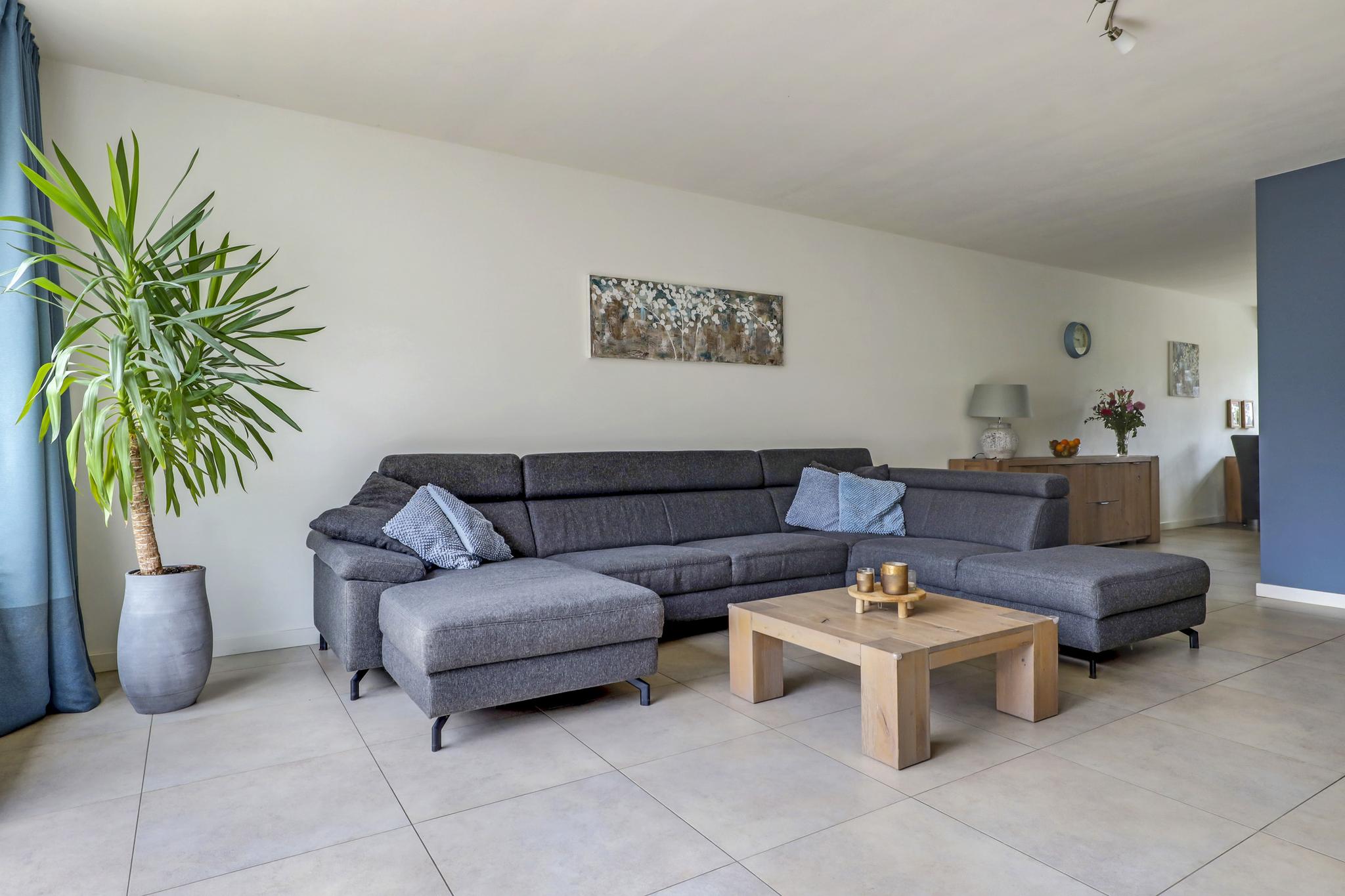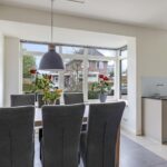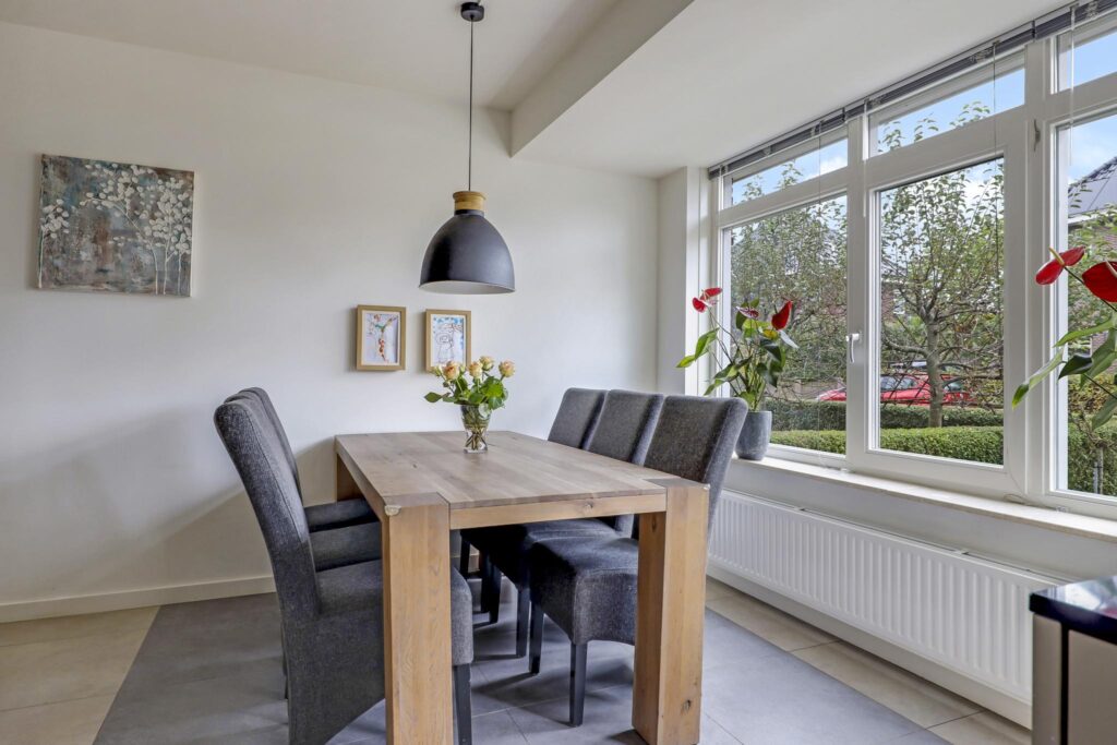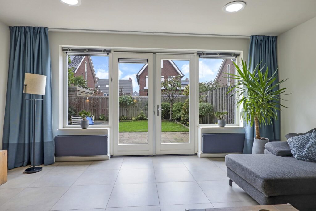 De woonkamer is aan de achterzijde gelegen en daarmee tuingericht. Door de aanbouw voelt de woonkamer lekker ruim aan waarbij dubbele tuindeuren direct toegang geven tot het buitenterras. In combinatie met de grote zijramen naast de deuren is er een aangename lichtinval. Door de aantrekkelijke breedtemaat (5,5m inpandig) en de aanbouw hoef je niet te twijfelen of die grote hoekbank wel past. Bovendien hoef je de eettafel hier niet te plaatsen aangezien er een eethoek aan de voorzijde bij de erker is gecreëerd.