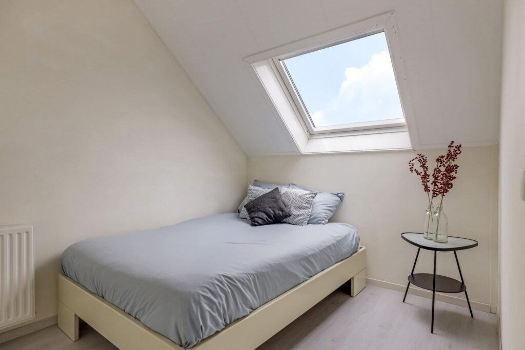 Slaapkamer 4 met groot dakvenster en knieschot opbergruimte