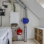 Wasruimte met witgoedaansluitingen, CV-ketel, MV-unit en dakvenster.