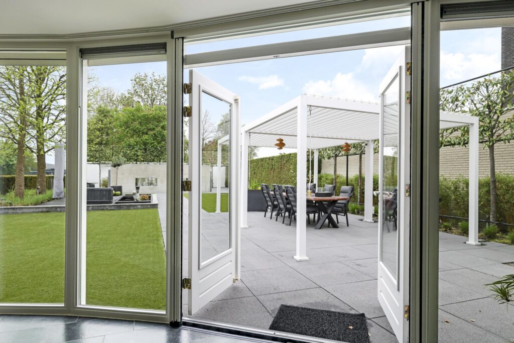 – Terras met aluminium lamellendak v.v. dimbare ledspots;