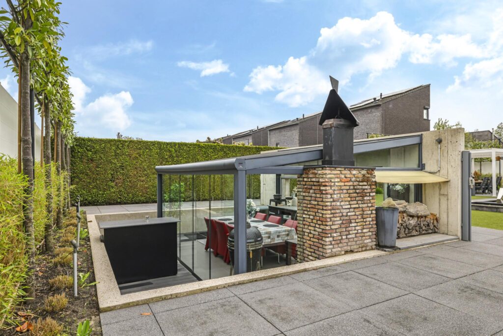 – Tuinkamer (achter betonwand met doorkijk) met o.a. een Afrikaanse Braai en elektrisch bedienbare dakscreens (zonwering);