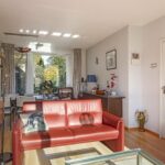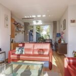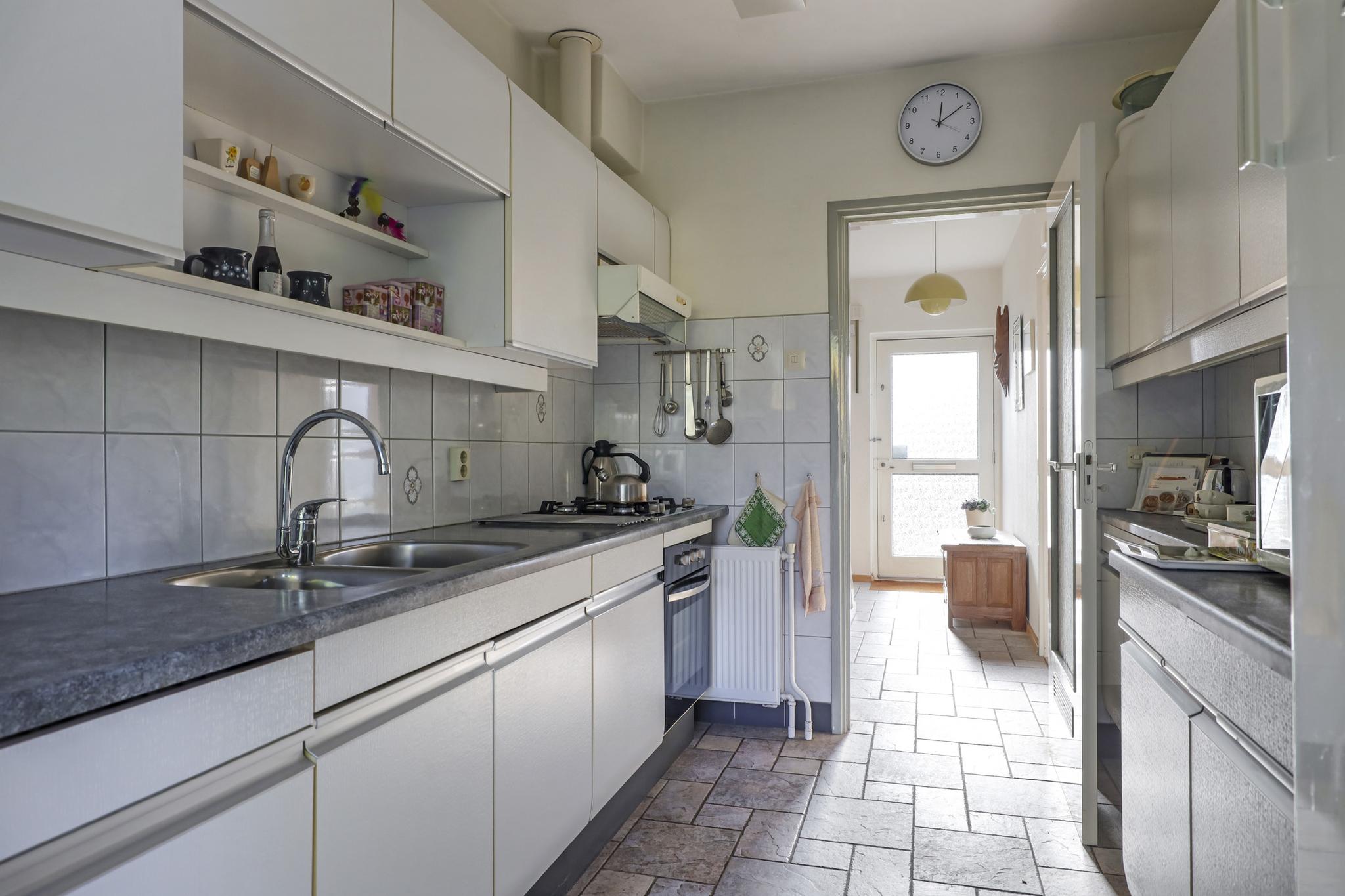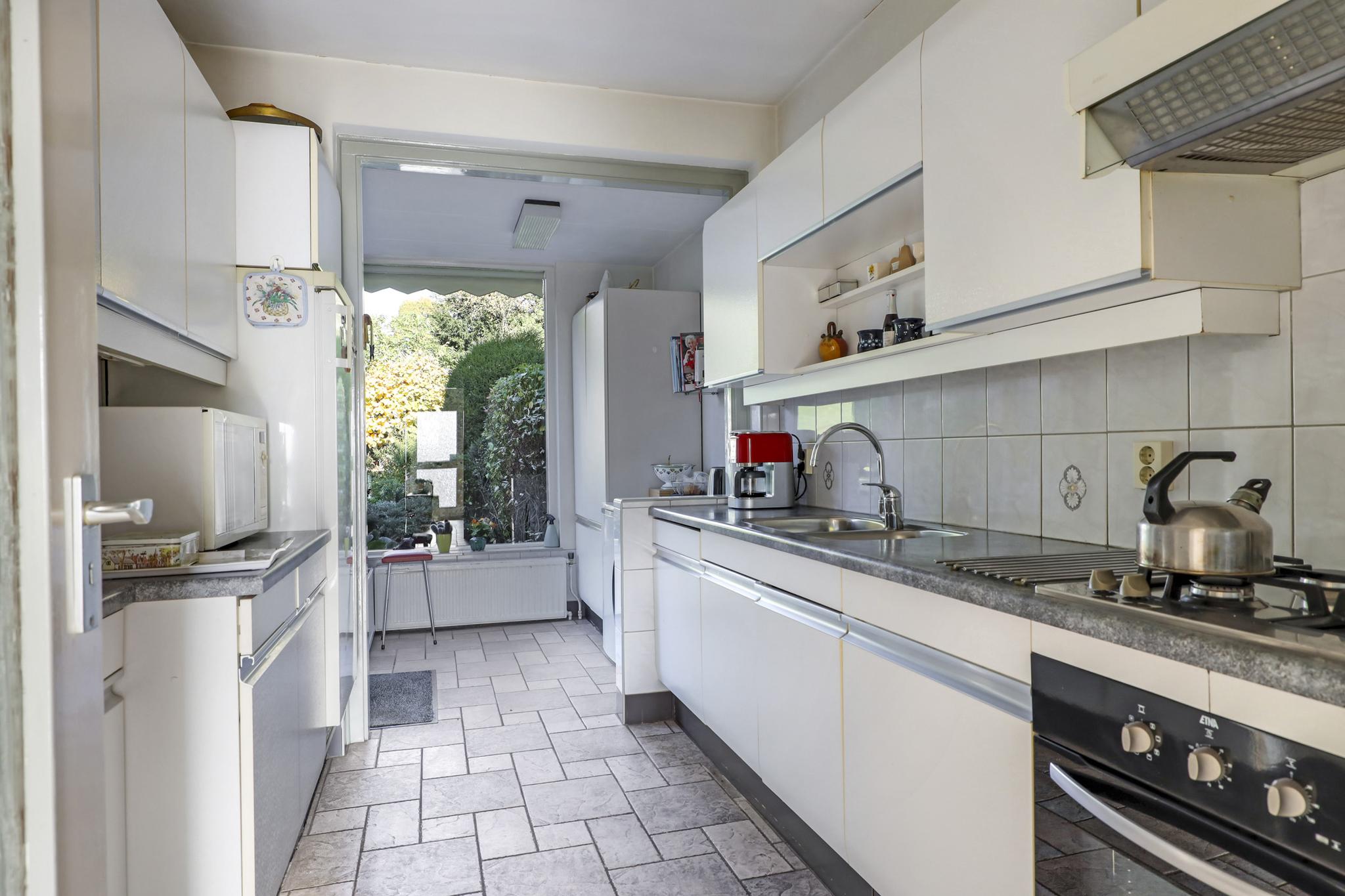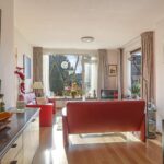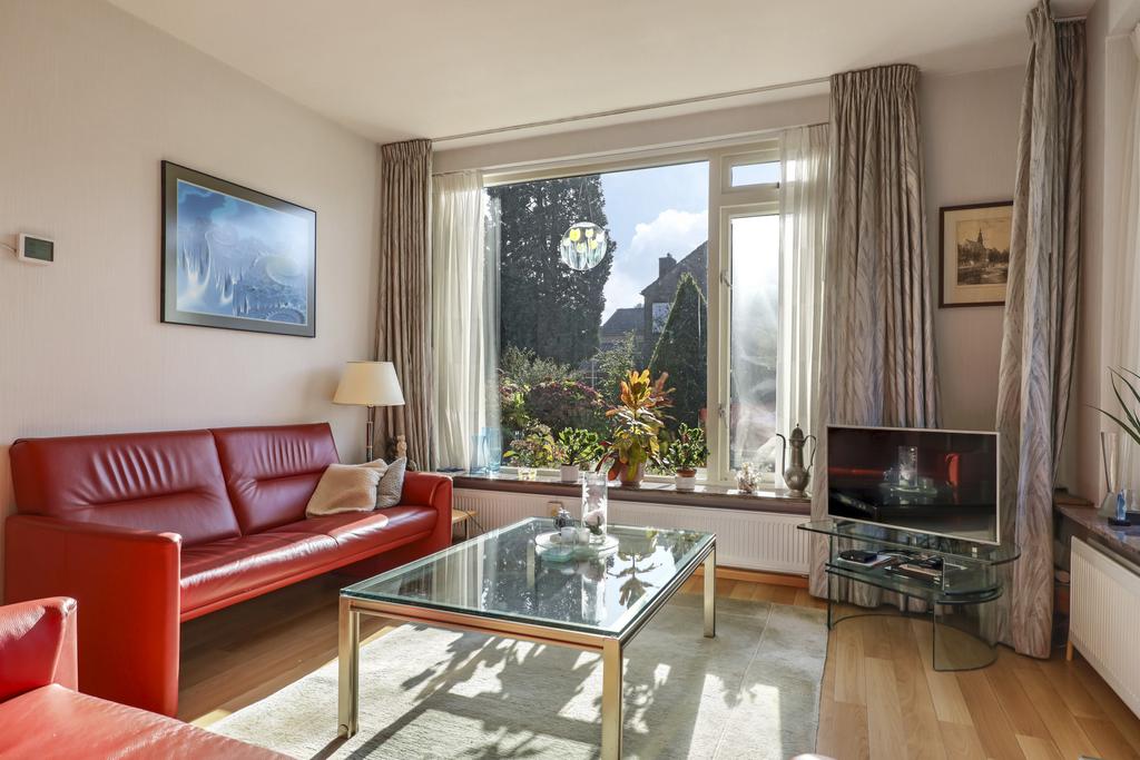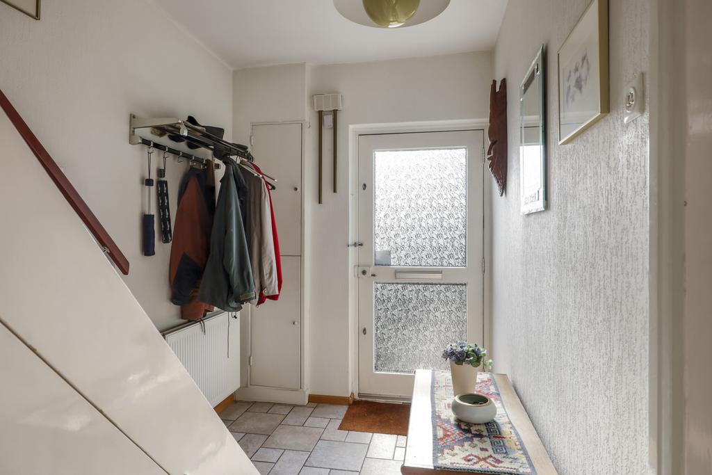 Je kent het vast wel: de doorzon-woonkamer. In de jaren 50 tot en met 70 was dit de klassieke indeling waarbij grote ramen in de voor- en achtergevel voor veel zonnewarmte moesten zorgen. Maar bovenal zorgt het voor veel lichtinval en als je geluk hebt ook een fraai uitzicht in de voor- en achtertuin. Deze woning heeft het allemaal, zelfs een zijgevelraam. Met 7 meter voortuin en nog een groenstrook achter het voetpad kijk je niet direct op de straat. Aan de achterzijde kijk je vanaf de bank eveneens vrij het groen van de achtertuin in. Het geeft een bepaald vrijheidsgevoel. Er is een rookkanaal aanwezig (nooit gebruikt) waar je wellicht een gezellige kachel op kunt aansluiten. Een tuindeur in de achterpui geeft direct toegang tot het buitenterras.