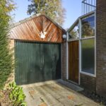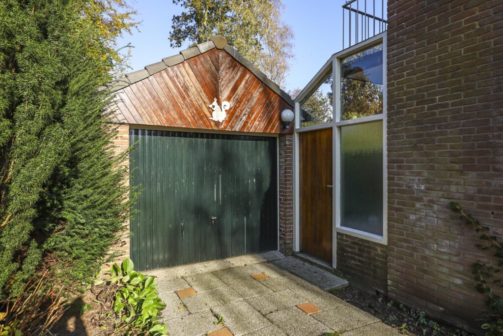 Aan het einde van de 12 meter diepe oprit staat een vrijstaande, stenen garage. En niet zomaar een garage. Deze garage heeft een pannengedekt zadeldak in plaats van een plat dak die veel kwetsbaarder is. Bovendien heeft een garage met zadeldak net even iets meer karakter. De garagedeur is vervangen door een elektrisch bedienbare kanteldeur. Hierdoor rij je een auto eenvoudig naar binnen zoals hier nog dagelijks gebeurd. En dat terwijl de garage is opgedeeld met achterin een klusruimte met werkbank. Naast normale stopcontacten en verlichting heeft deze garage ook krachtstroom. Opvallend is dat achterin de garage in een kleine ‘aanbouw’ de CV-ketel voor de woning is geïnstalleerd. Hierdoor is het eenvoudig om ook de garage te voorzien van centrale verwarming.