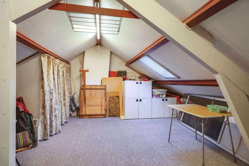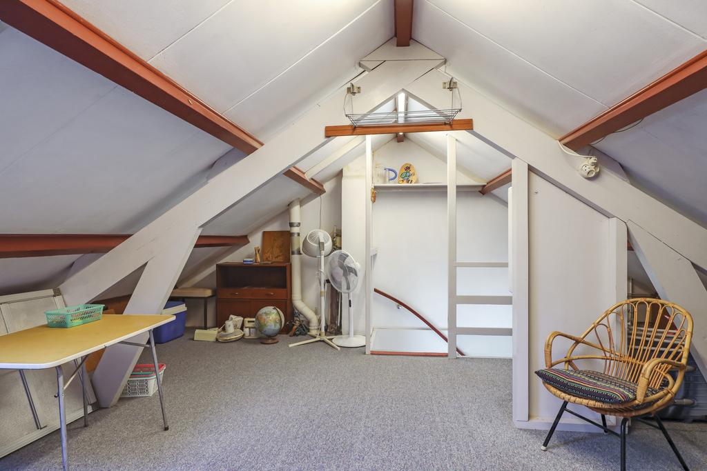 Van oorsprong was de 2e verdieping alleen met een vlizotrap toegankelijk. Dat was zonde aangezien de zolder veel potentie had tot een extra woonlaag. Om die reden is er ook een 2e vaste trap geplaatst. De nok van deze woonlaag ligt op iets meer dan 2,3 meter hoogte waardoor je hier prima kunt staan. Je zou er zelfs een extra slaapkamer kunnen creëren. Er is immers al een dakvenster geplaatst waardoor er daglicht aanwezig is. Wellicht dat een dakkapel nog meer mogelijkheden biedt.
