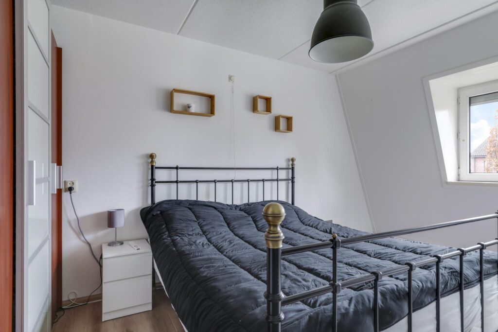 Doordat de woning een mansarde kap heeft, kom je op deze woonlaag al de schuine kapconstructie tegen. Echter doordat de kap op deze woonlaag al erg stijl is heb je hier minimaal ruimteverlies. De overloop verbindt hier 3 slaapkamers en de badkamer aan elkaar. De 2 slaapkamers aan de voorzijde van de woning zijn voorzien van een dakkapel en rolluiken om de kamers geheel te verduisteren. Aan de achterzijde is nog een 3e slaapkamer gelegen. Op deze kamer zijn ook de witgoedaansluitingen gesitueerd. Erg prettig is het zijgevelraam op de overloop waardoor je hier van extra lichtinval geniet.