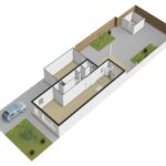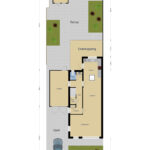 Naast de garage is een achterom aanwezig. Echter is deze gedeeld met de buren waarbij je beide gebruik maakt van deze doorgang. Uiteraard is het mogelijk om de tuin van deze doorgang af te scheiden middels een poort.