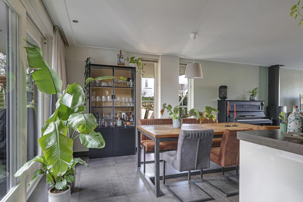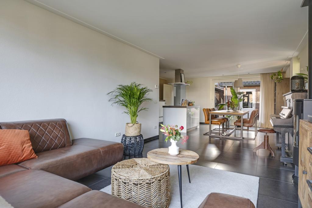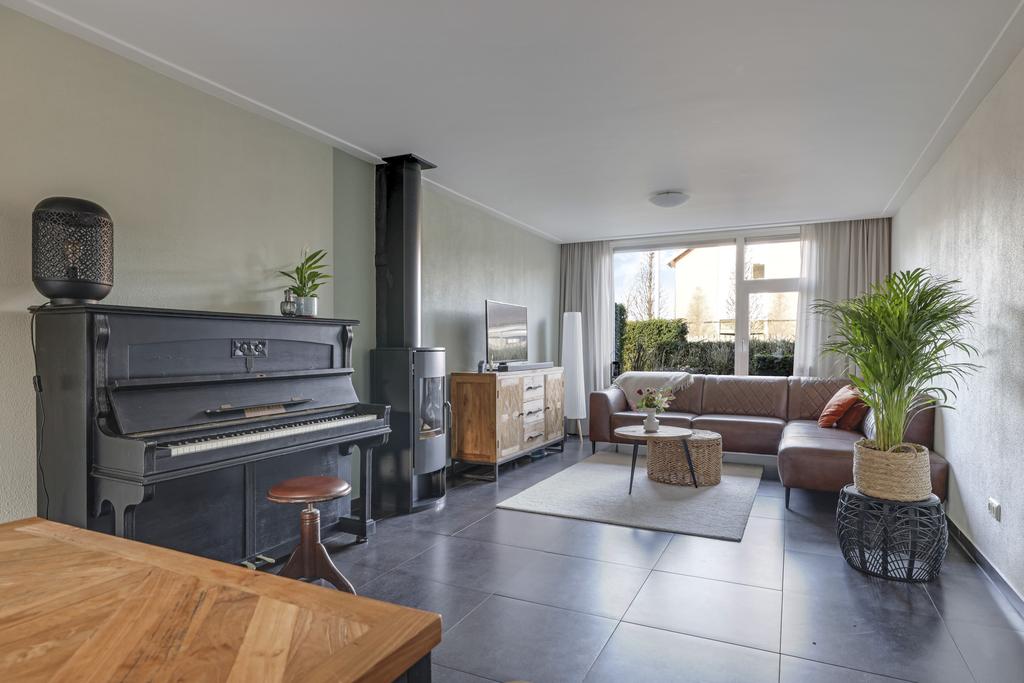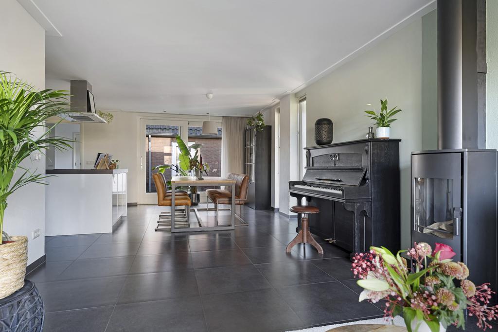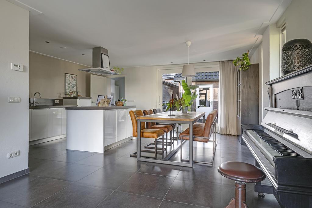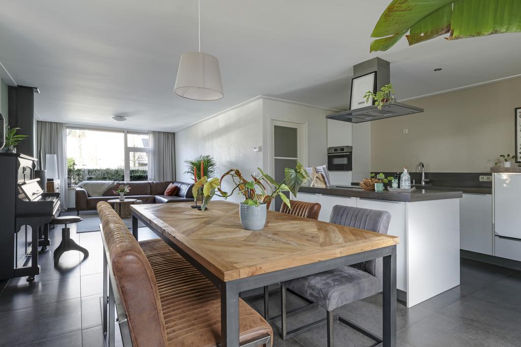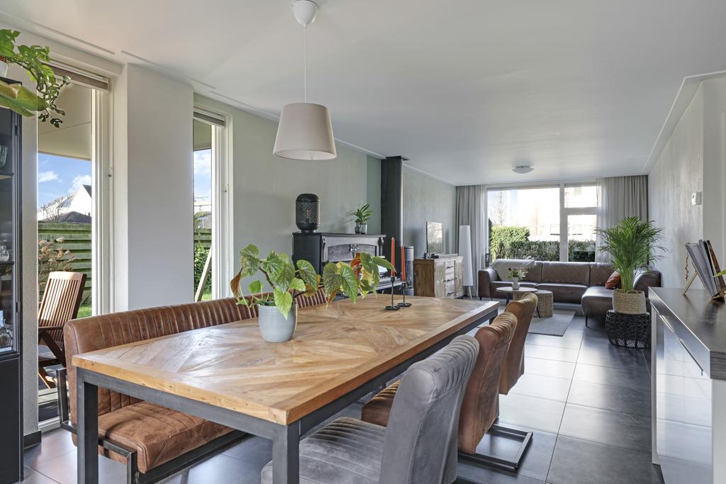 Deze woning heeft van zichzelf een klassieke indeling met een doorzon-woonkamer. Grote ramen met een prettige lichtinval waarbij de woonkamer van voor naar achteren loopt. Door de aanbouw is de woonkamer aanzienlijk verlengd naar maar liefst 10 meter. En met een breedtemaat van 3,6 meter kun je er met gemak een lekkere hoekbank kwijt. In de aanbouw is er plaats voor een lange 6- of misschien wel 8-persoons eettafel. Hou je van gezellige winteravonden bij de kachel? Dan zal je de gashaard in de woonkamer zeker kunnen waarderen. Overigens zal de plavuizen vloer met vloerverwarming (zonder radiatoren) altijd voor een aangenaam gevoel zorgen.