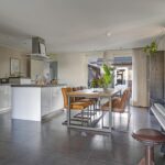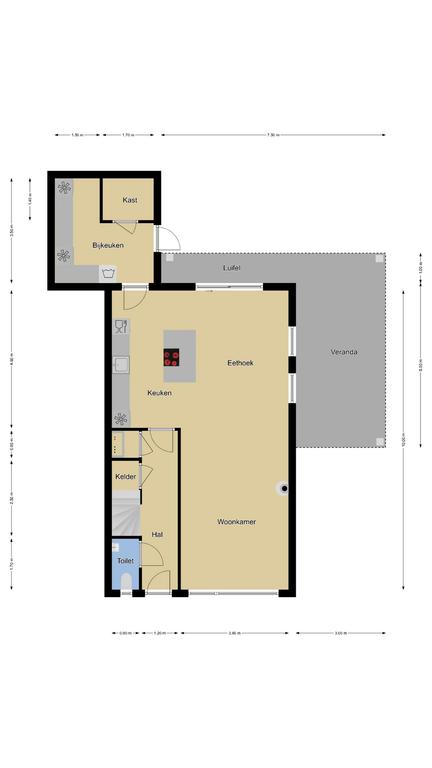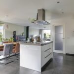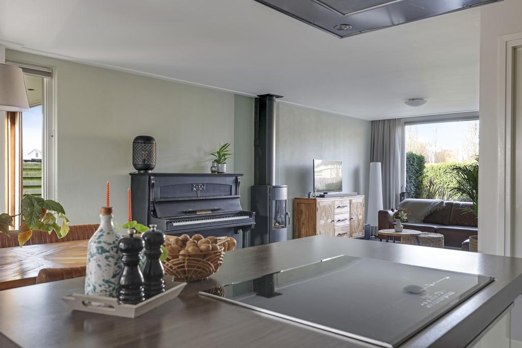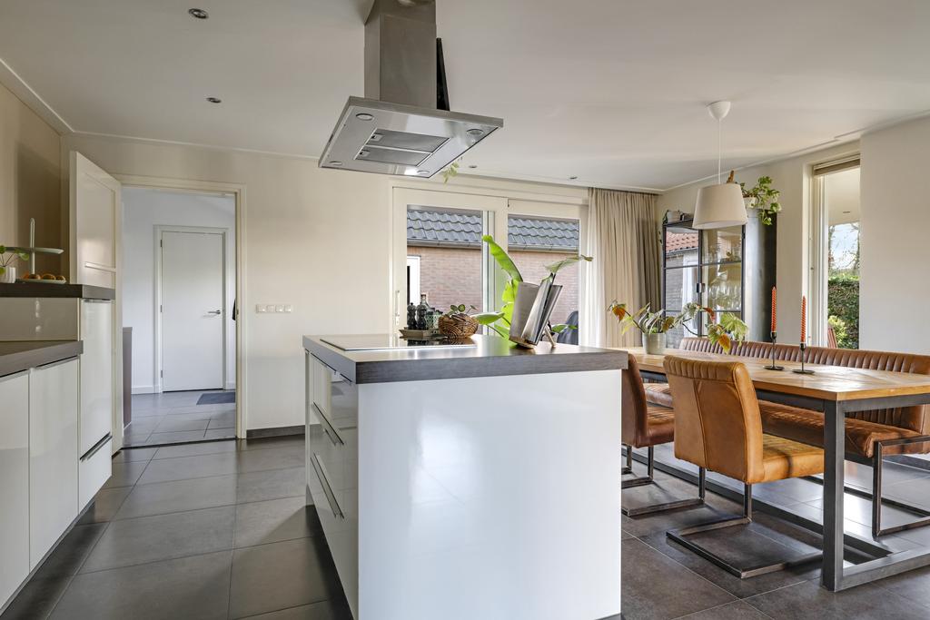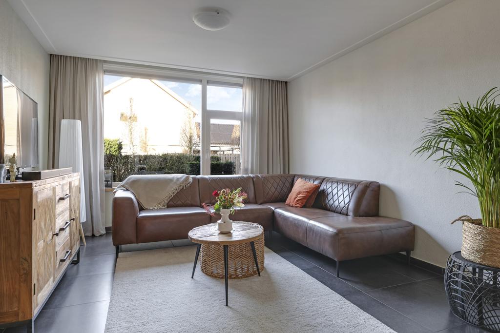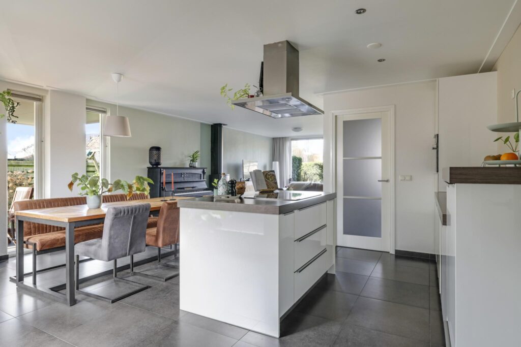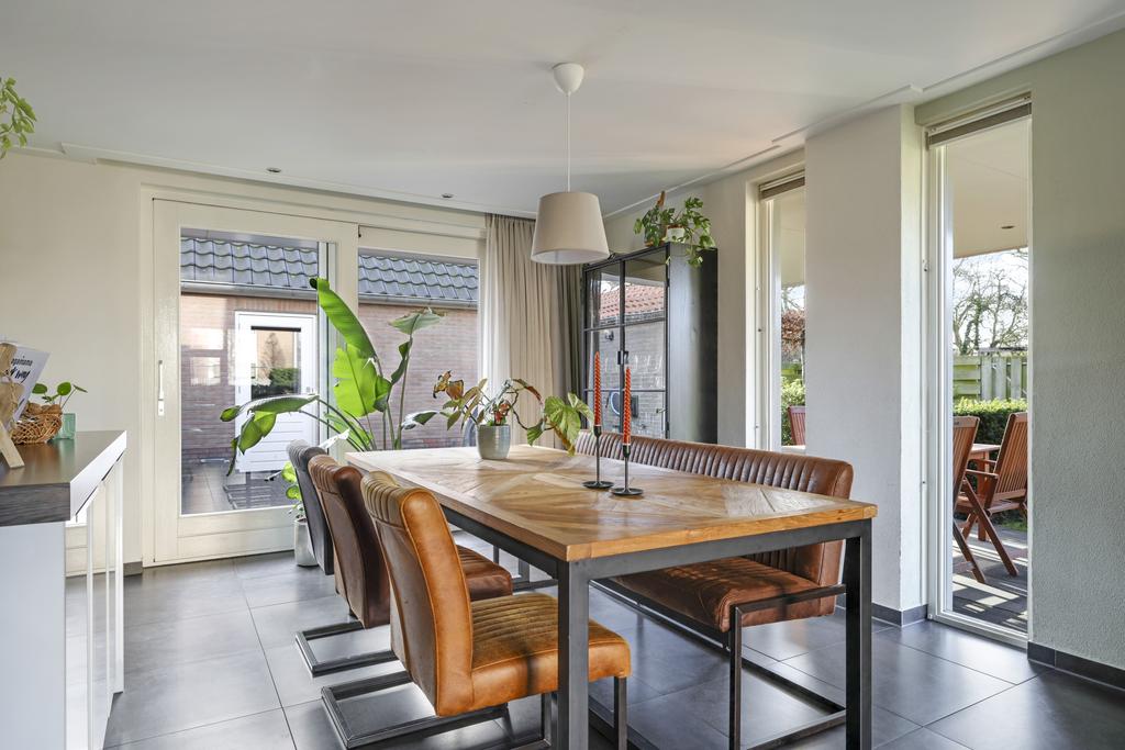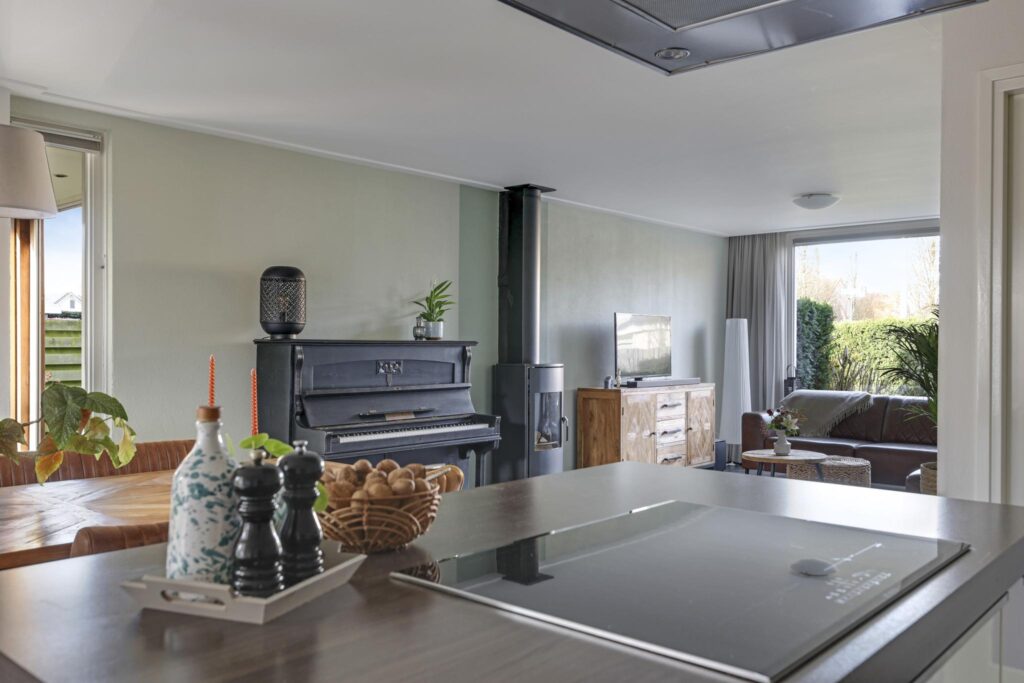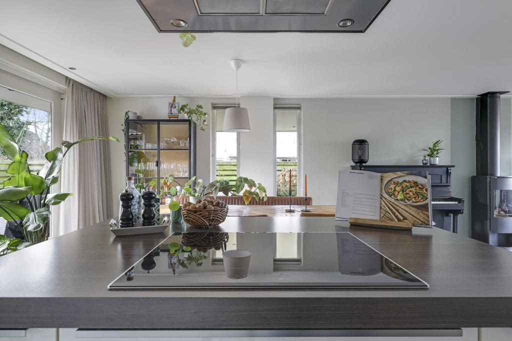 Deze woning heeft van zichzelf een klassieke indeling met een doorzon-woonkamer. Grote ramen met een prettige lichtinval waarbij de woonkamer van voor naar achteren loopt. Door de aanbouw is de woonkamer aanzienlijk verlengd naar maar liefst 10 meter. En met een breedtemaat van 3,6 meter kun je er met gemak een lekkere hoekbank kwijt. In de aanbouw is er plaats voor een lange 6- of misschien wel 8-persoons eettafel. Hou je van gezellige winteravonden bij de kachel? Dan zal je de gashaard in de woonkamer zeker kunnen waarderen. Overigens zal de plavuizen vloer met vloerverwarming (zonder radiatoren) altijd voor een aangenaam gevoel zorgen.