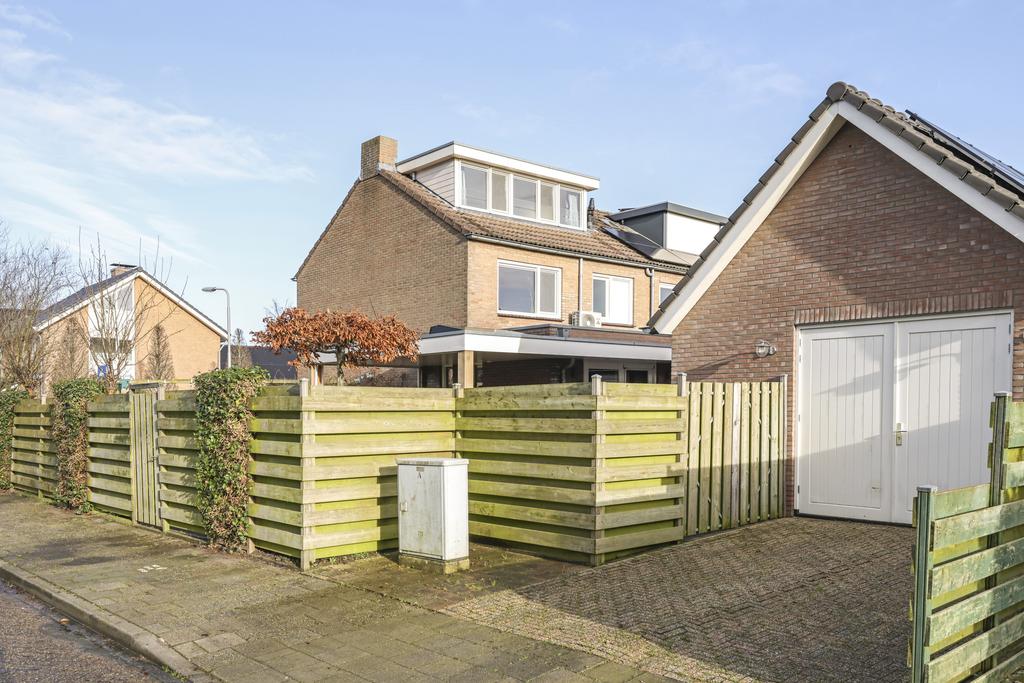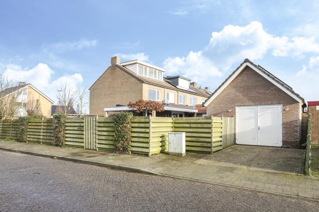 Op bijzonder fraaie wijze, luxe verbouwde en maximaal uitgebouwde HOEKWONING (ca. 133m2 woonoppervlak), bestaande uit 3 volwaardige woonlagen, een stijlvolle VERANDA op de zuid/westzijde (met screens), een LUIFEL aan de achterzijde en achterin de tuin een geïsoleerde, stenen GARAGE van maar liefst 30m2 groot met zolder in de kap. De tuin ‘rondom’ de woning is zeer verzorgd aangelegd en biedt (naast veel zonuren) ook relatief veel privacy. Vóór de garage is een OPRIT gelegen met plaats voor één auto.