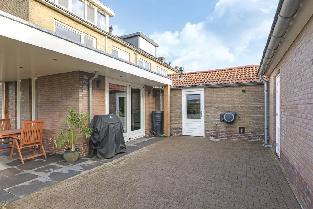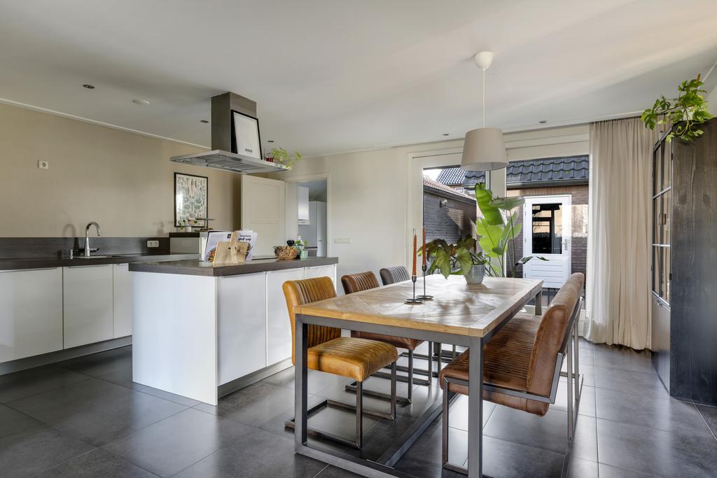 Deze hoekwoning is werkelijk van-top-tot-teen gestript en opnieuw ‘opgebouwd’ en aangekleed. Letterlijk vanuit de basis zijn alle aspecten aangepakt. De originele houten begane grondvloer is vervangen door een geïsoleerde betonvloer met vloerverwarming. Kozijnen zijn vervangen door hardhouten exemplaren i.c.m. HR++ beglazing. Al het leidingwerk, afvoeren en elektra is vervangen. Zelfs de meterkast is verplaatst en voorzien van een zeer uitgebreide groepenkast. Hierdoor is de hal vergroot. Dit was ook mogelijk doordat de woning aan de achterzijde, over de volle breedte, maximaal is uitgebouwd. Hierdoor ontstond er ruimte voor een luxe eilandkeuken en een grote eethoek met dubbele terrasdeuren. Groot pluspunt is de voormalige schuur die door de aanbouw aan de woning is gekoppeld. Grenzend aan de keuken is hier een bijzonder praktische en ruime bijkeuken (met zadeldak) en 2e keukenblok gerealiseerd.