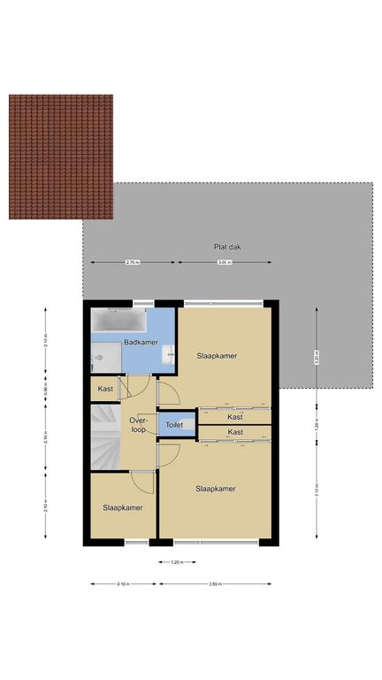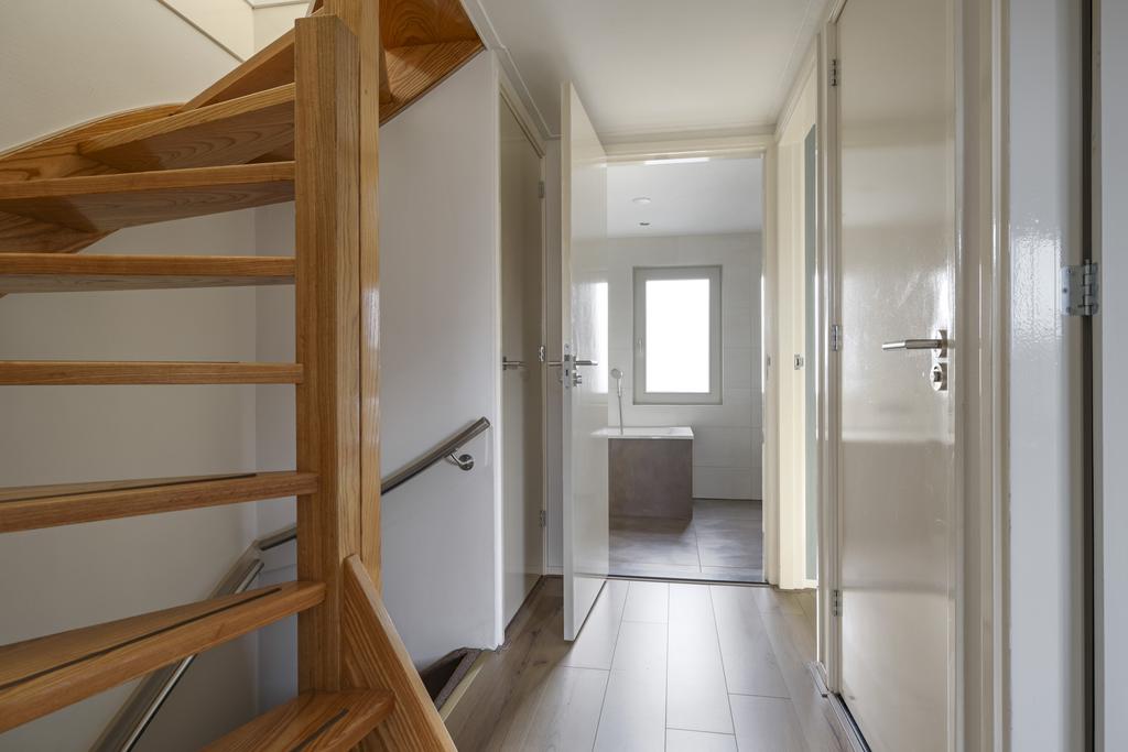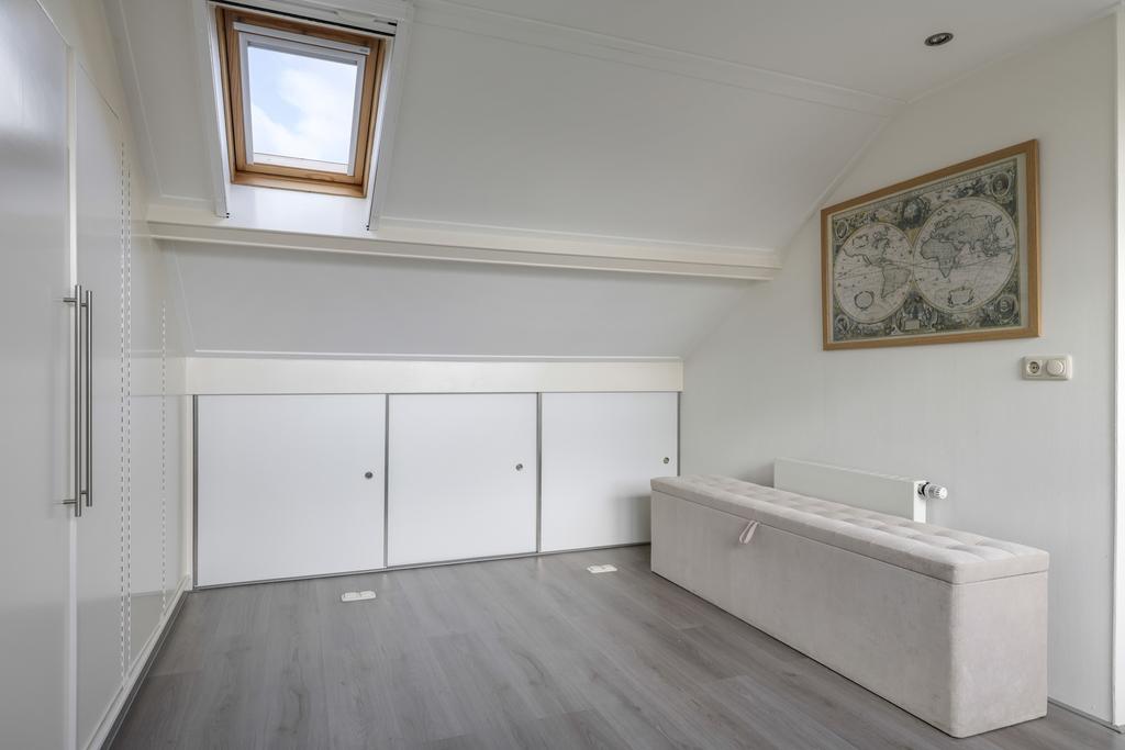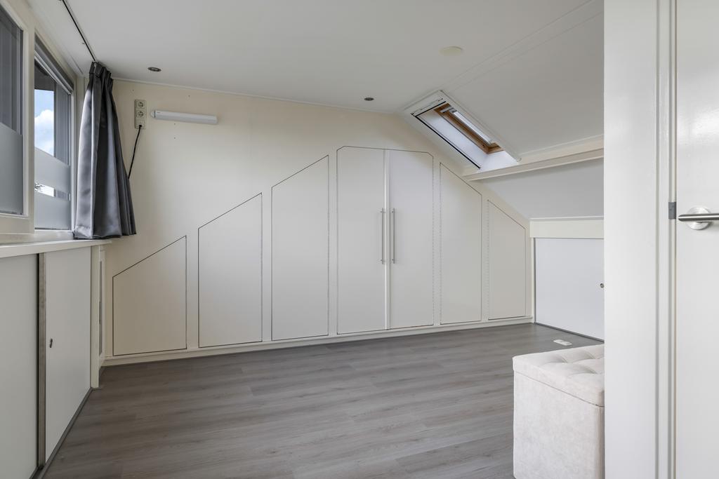 Nog zo’n verbetering is de vaste trap naar de 2e verdieping. Voorheen zat er alleen een vlizotrap op de overloop, maar doordat er een degelijke, vaste trap is geplaatst, is de woning ineens vergroot met een extra woonlaag. In combinatie met een maximaal brede dakkapel en een extra dakvenster is hier een ruime slaapkamer gecreëerd. Uiteraard is het dak geïsoleerd en is de woning tot in de nok vakkundig afgewerkt. Geen hoekje is onbenut gebleven waardoor je door de gehele woning, praktische kastruimte tegenkomt waaronder enkele hang- en legkasten voor kleding op de slaapkamers. De aanwezige airconditioning zorgt bovendien voor een aangenaam leefklimaat. Kortom, een veel completere gezinswoning ga je in dit (prijs)segment niet snel vinden.