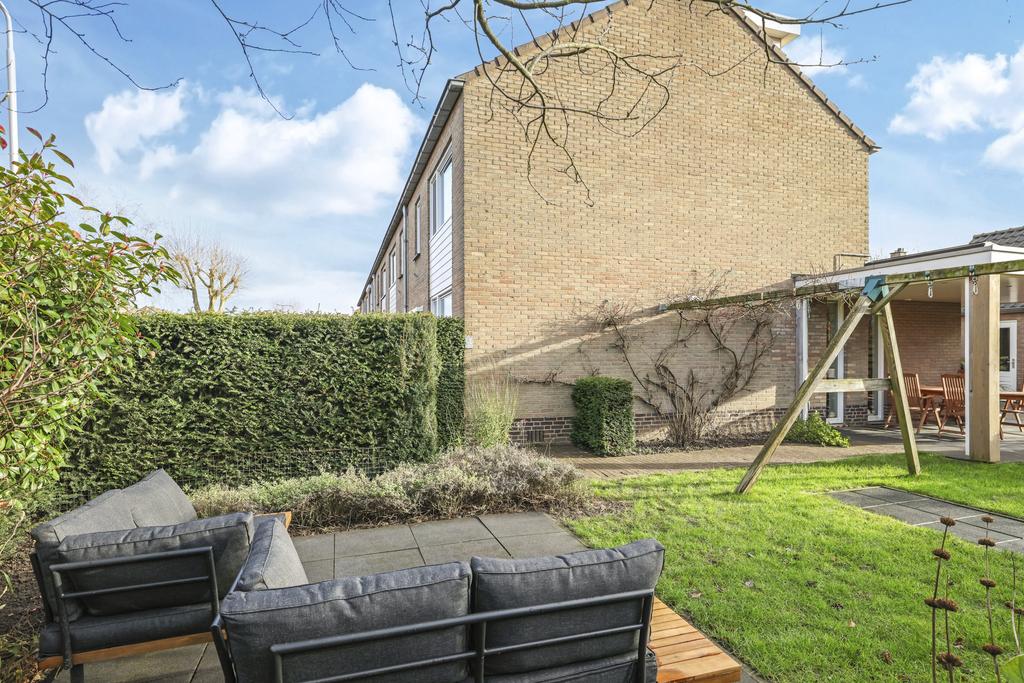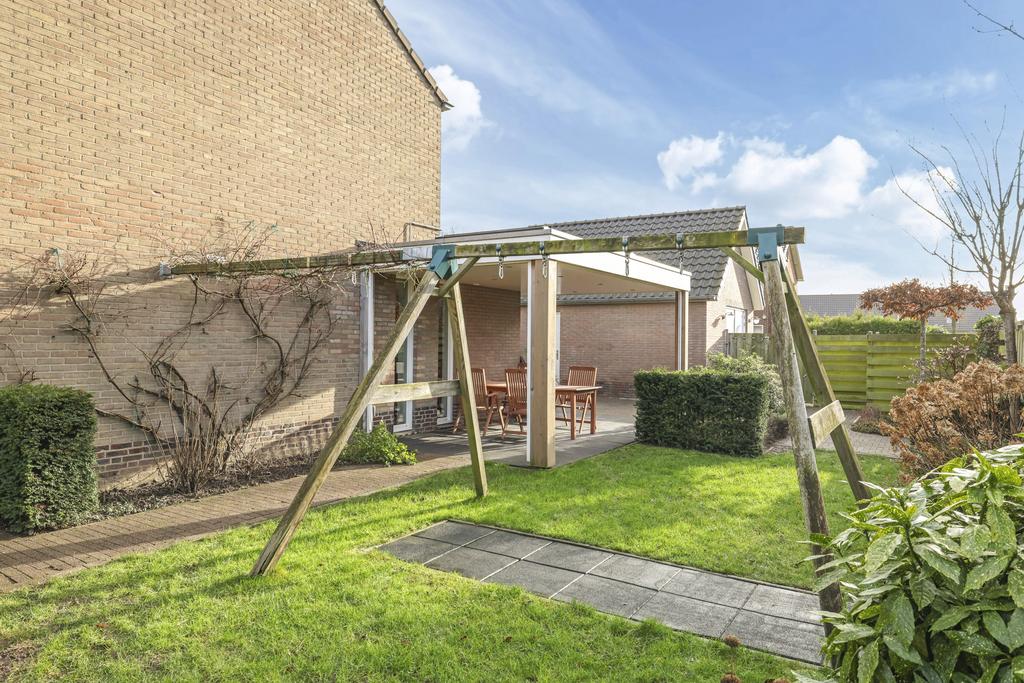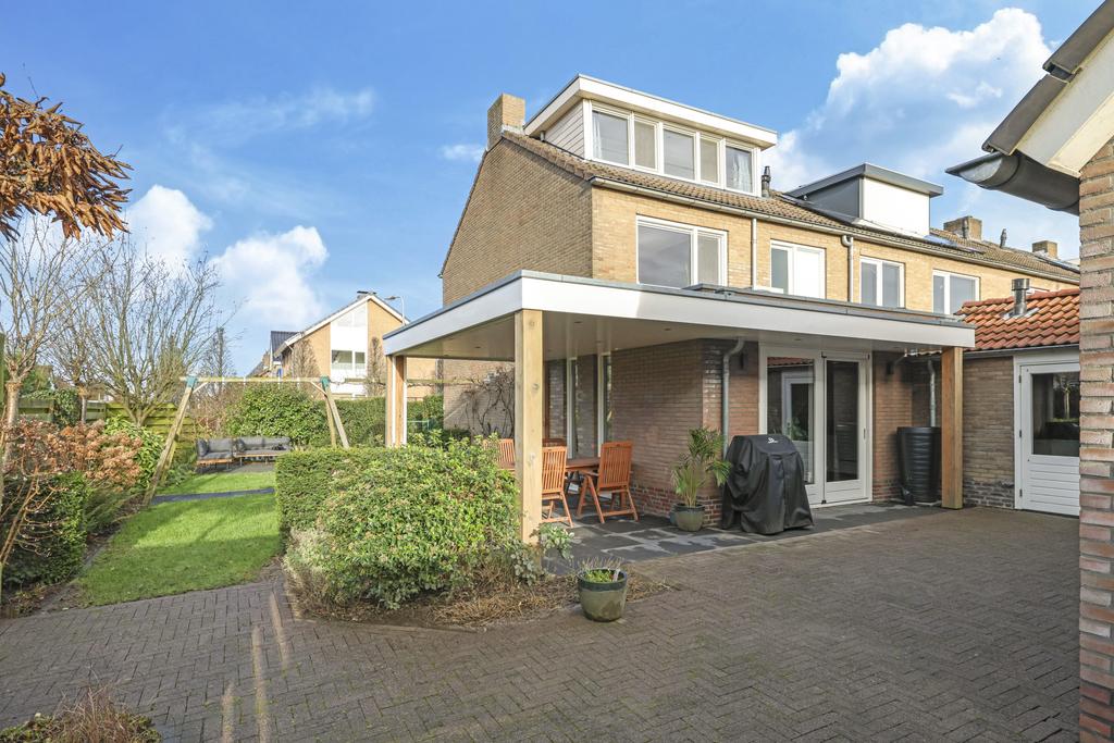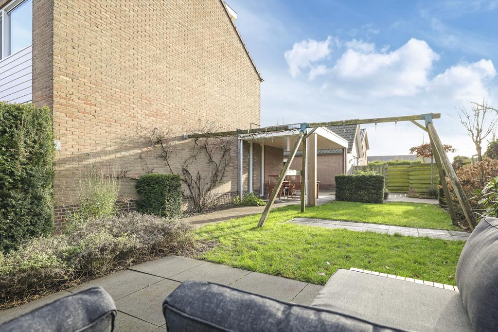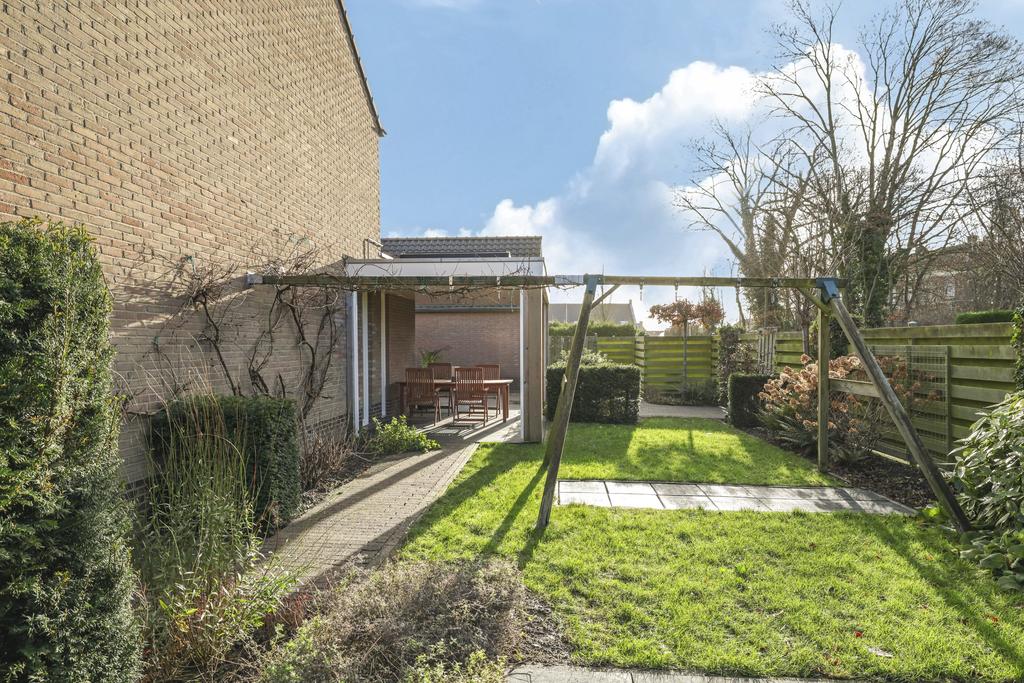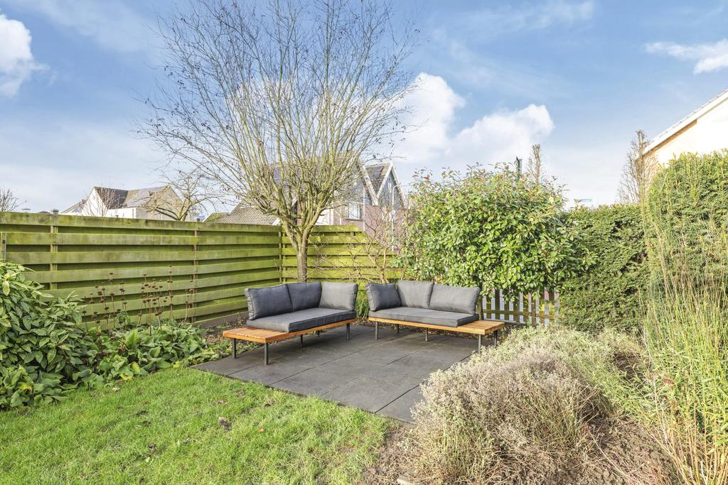Deze woning staat op een relatief groot perceel van 356m2 (!) groot. En dat zie je ook meteen terug aan de tuin ‘rondom’ de woning. Meestal liggen de meeste vierkante meters aan de achterzijde, maar hier is de zijtuin meer dan 8 meter breed. In de aanleg is hier dan ook dankbaar gebruik van gemaakt waarbij verschillende planten, bomen en een gazon voor een zeer verzorgd, overzichtelijk en groen karakter zorgen. Bovendien is er goed nagedacht hoe de meeste privacy te creëren en dat is aardig gelukt. Ben je een zonliefhebber, dan geniet je in de tuin maximaal aantal zonuren aangezien de tuin op het zuid/westen is georiënteerd. Er zijn meerdere terrassen aangelegd waar je in de zon (of schaduw) kunt zitten.