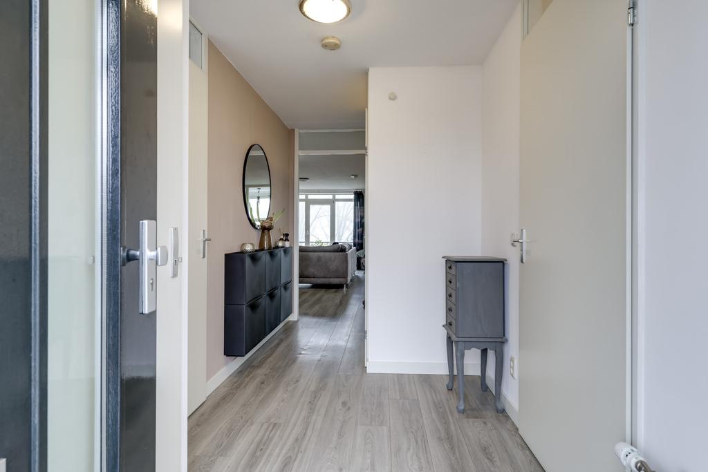 Quote van de makelaar: “Bij dit appartement staat wooncomfort voorop. Met een woonkamer met nette pvc-vloer een luxe keuken, vaste inbouwkasten voor opbergruimte en rolluiken is alle het wenselijke hier al aanwezig. Daarbij is het complex voorzien van een lift zodat het appartement ook geschikt is wanneer je moeilijker ter been bent. Een ruime berging en een het winkelcentrum op loopafstand maken dit appartement nog comfortabeler.”