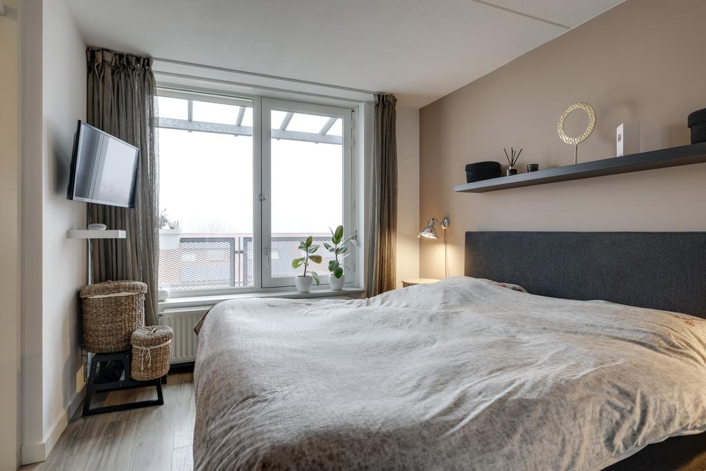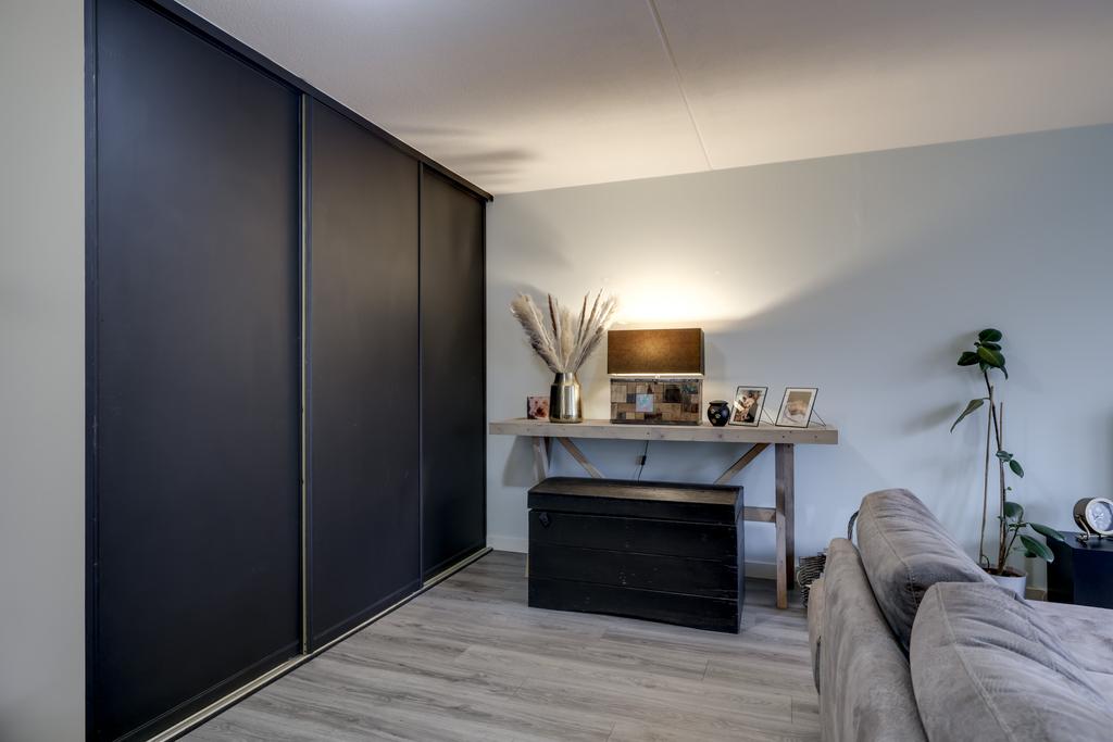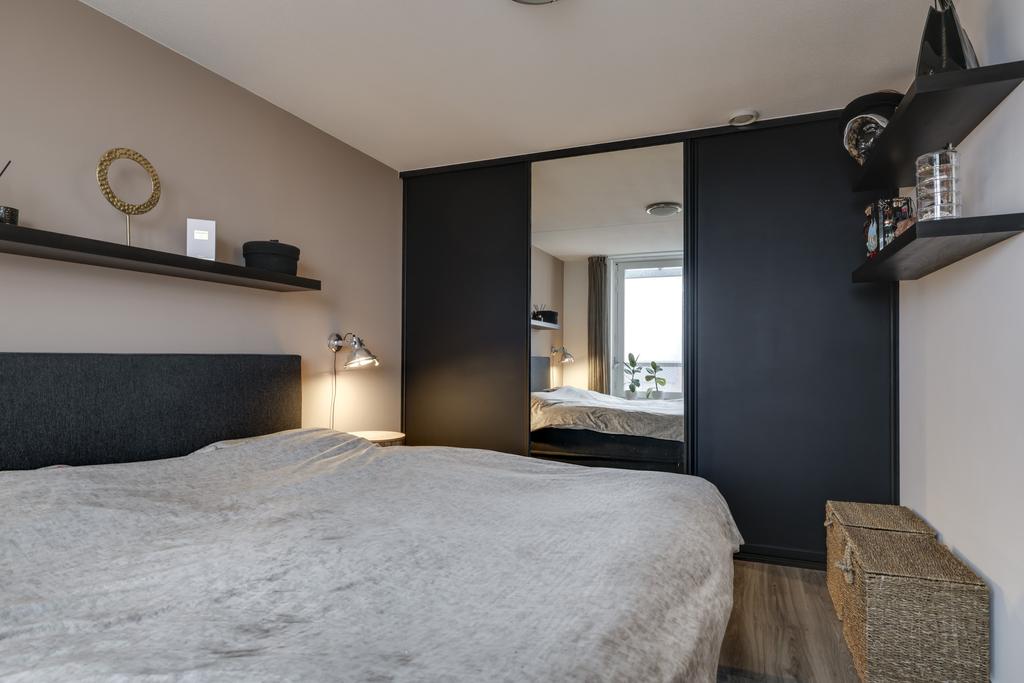 Dit appartement heeft een ruime slaapkamer van ca. 14m². Een groot voordeel is dat in deze ruime een riante kantenwand is geplaatst waardoor je meer dan voldoende opbergruimte hebt voor alle kleding. Een groot raam is aanwezig wat zorgt voor veel lichtinval. Er is een rolluik aanwezig om de kamer geheel te kunnen verduisteren.