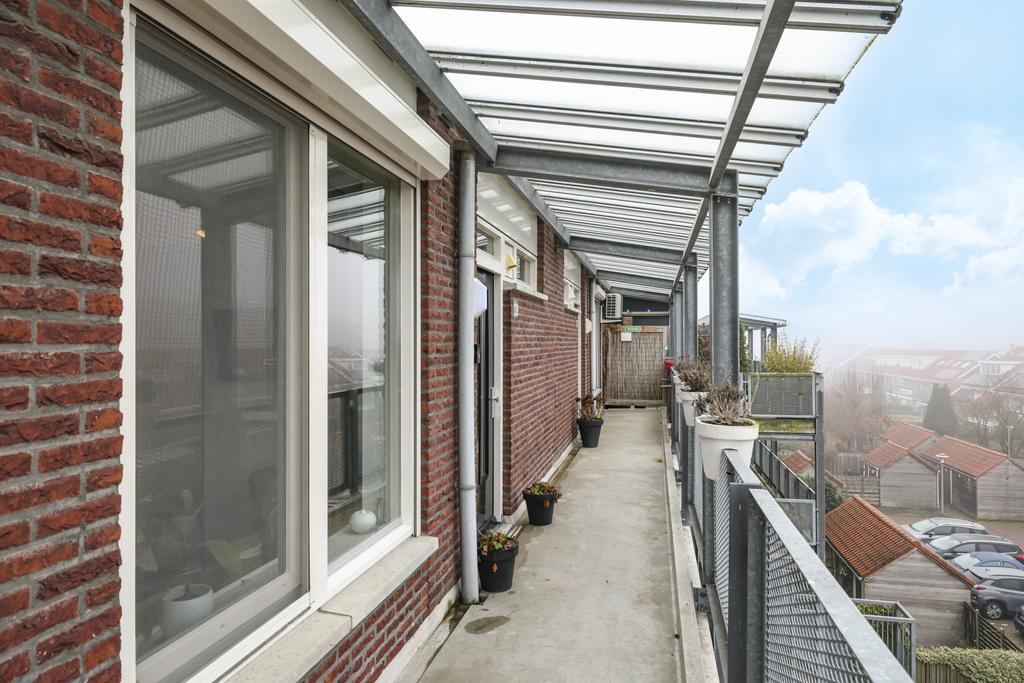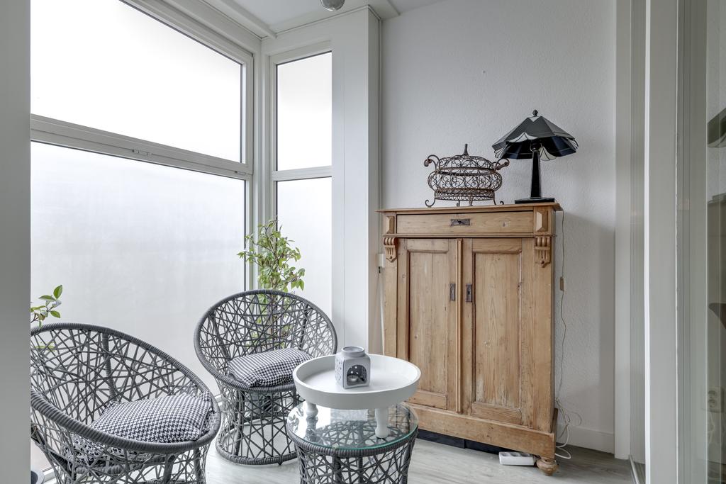 Dit appartement heeft een eigen serre/loggia welke grenst aan de woonkamer. Doordat deze ruimte iets uitsteekt ten opzichte van het appartement en geheel voorzien is van glas geeft het een gevoel van buitenleven. Een raam is (elektrisch) te openen wat het buitengevoel versterkt. Vanuit deze ruimte heb je mooi zicht op de groene bomen tegenover het appartement.