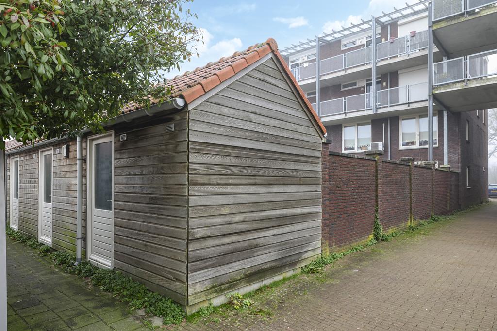 Op de begane grond van dit complex tref je de berging horende bij dit appartement. Deze berging is verrassend ruim (ca. 9m²) en dan ook groter dan gemiddeld. Opvallend is dat hier een zadeldak (nokhoogte is ca. 3,3m) op is geplaatst waardoor je hier zelfs nog een vliering kan maken voor nog meer opbergruimte. Een groot gemak is de aanwezige elektra-aansluiting waardoor je eventueel de elektrische fiets kunt opladen.