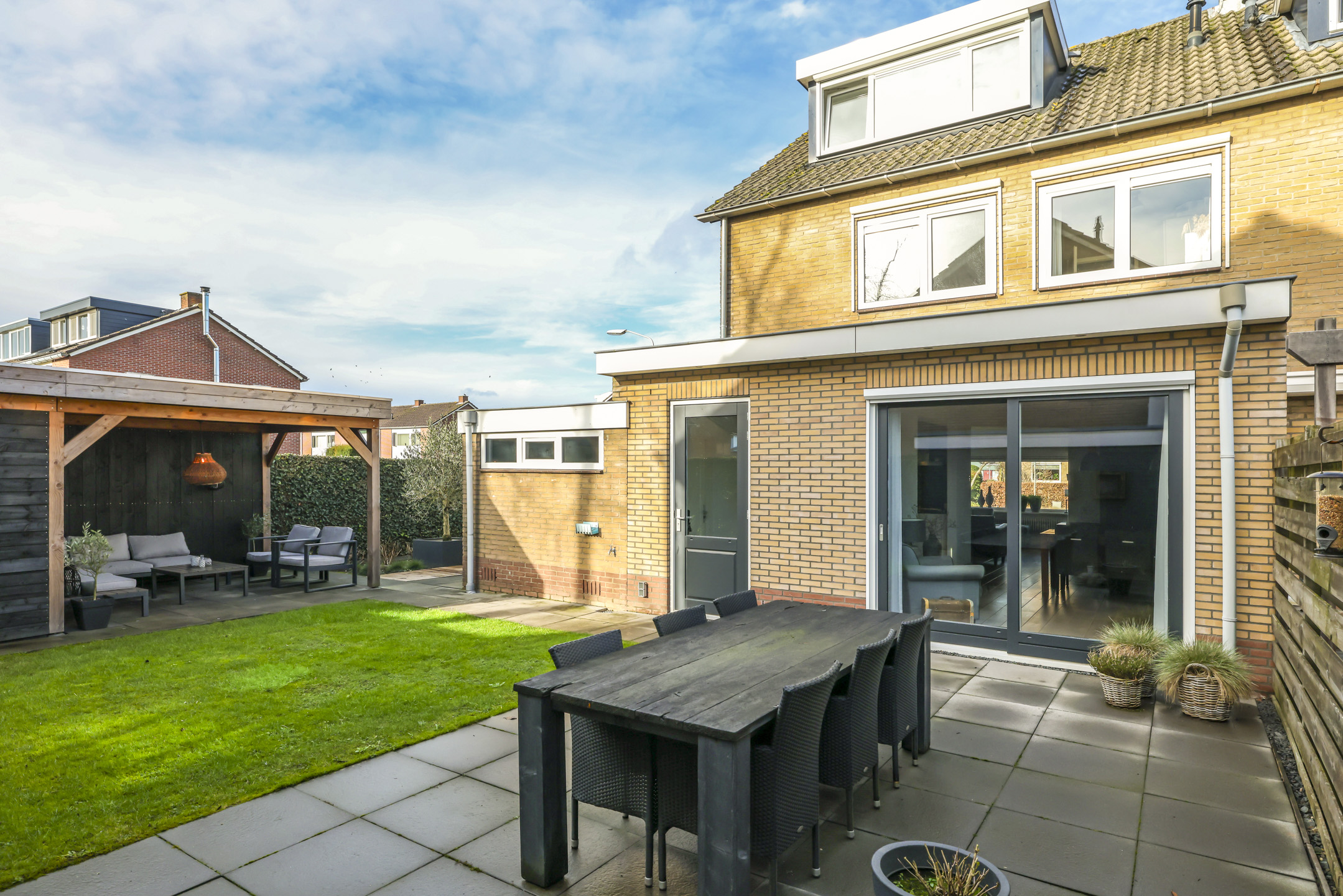 Zijtuin van ca. 5 meter breed zorgt voor veel extra buitenruimte