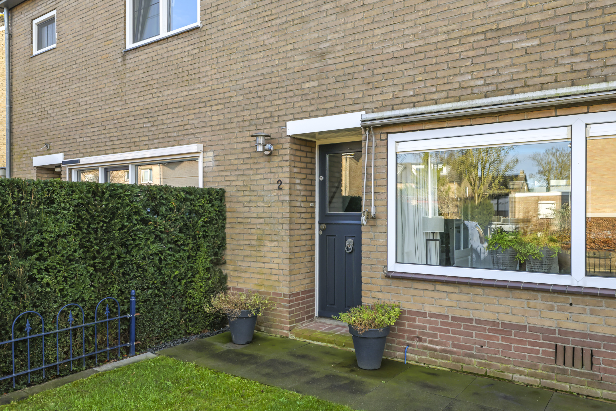 De enkele houten kozijnen (buitendeuren) zijn in 2022 door een schilder strak in de lak gezet
