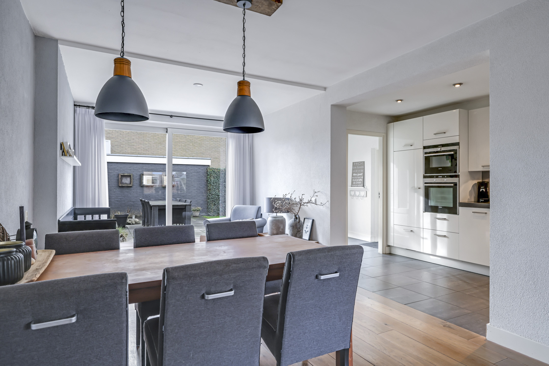 Woonkamer (Z-indeling) met aanbouw en schuifpui naar buitenterras