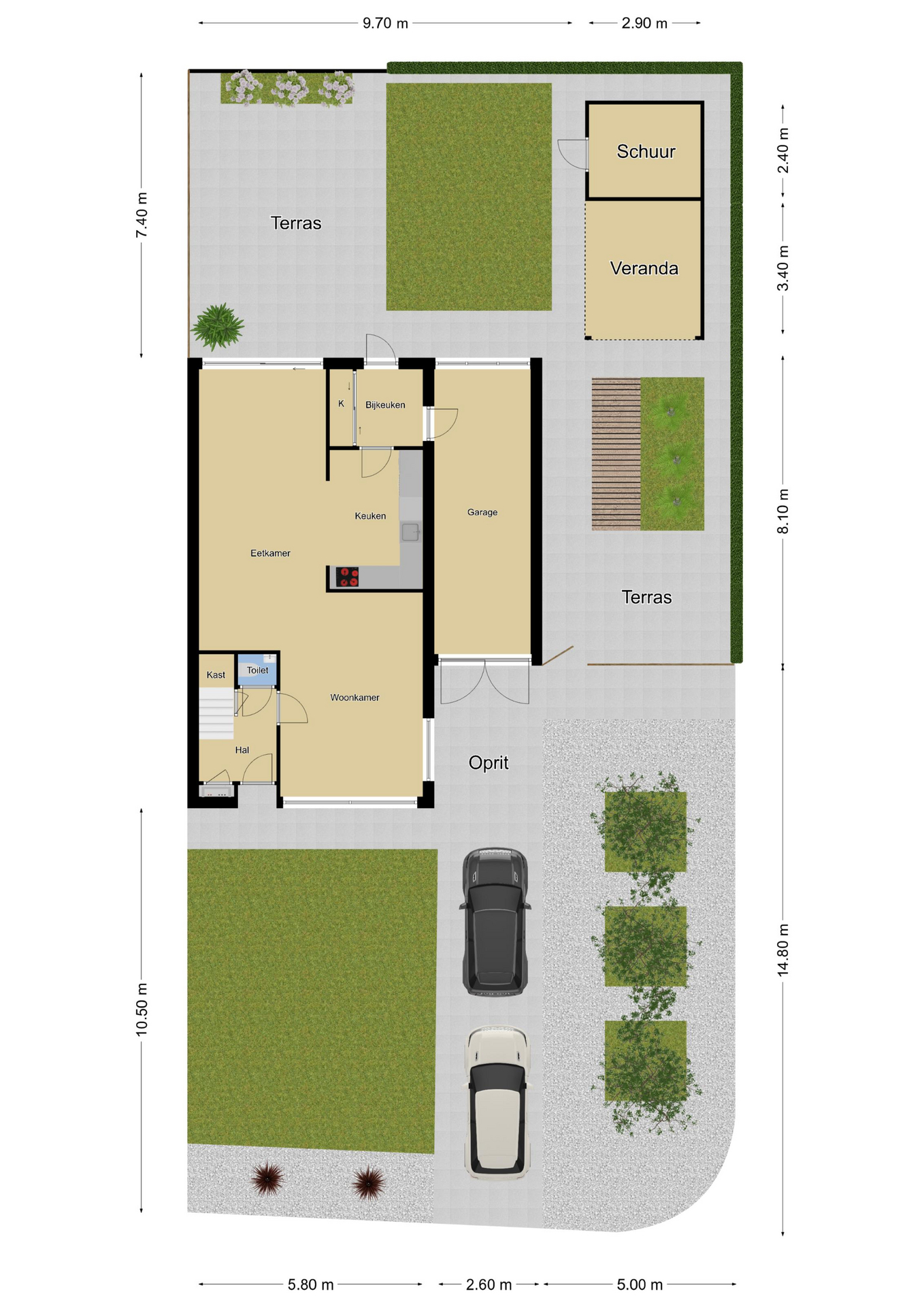 Aantrekkelijke breedtemaat van 5,7 meter (binnenmaat)